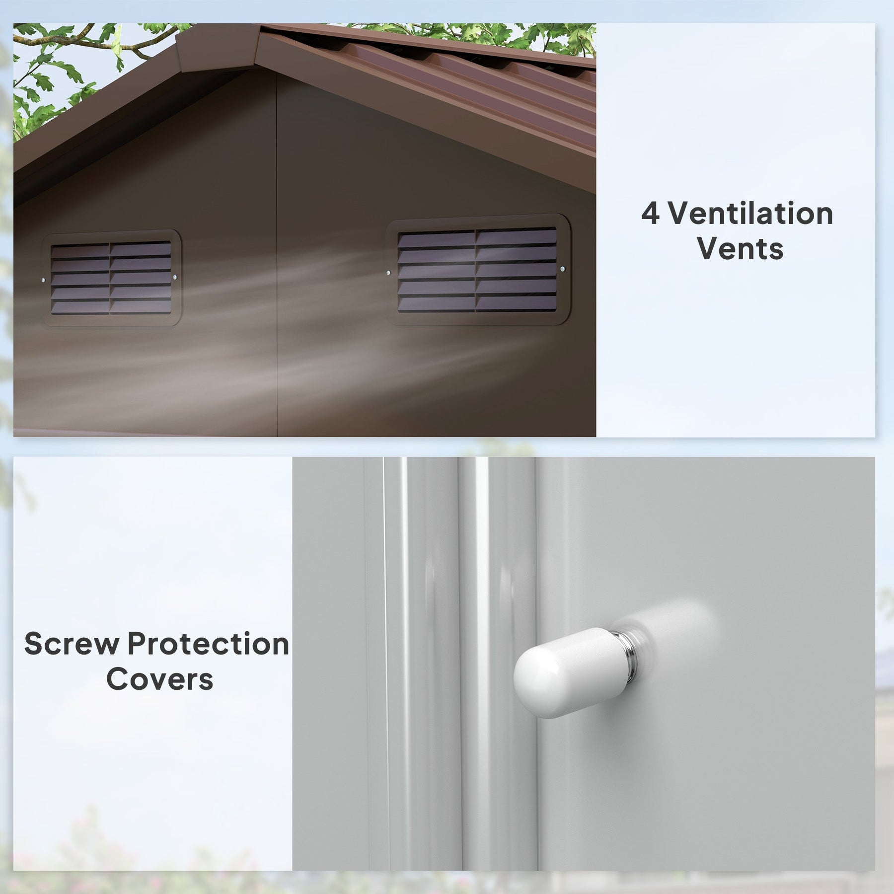 Outsunny 7.7' x 6.5' Outdoor Metal Garden Shed House Hut Gardening Tool Storage with Ventilation, Dark Brown with Wood Grain