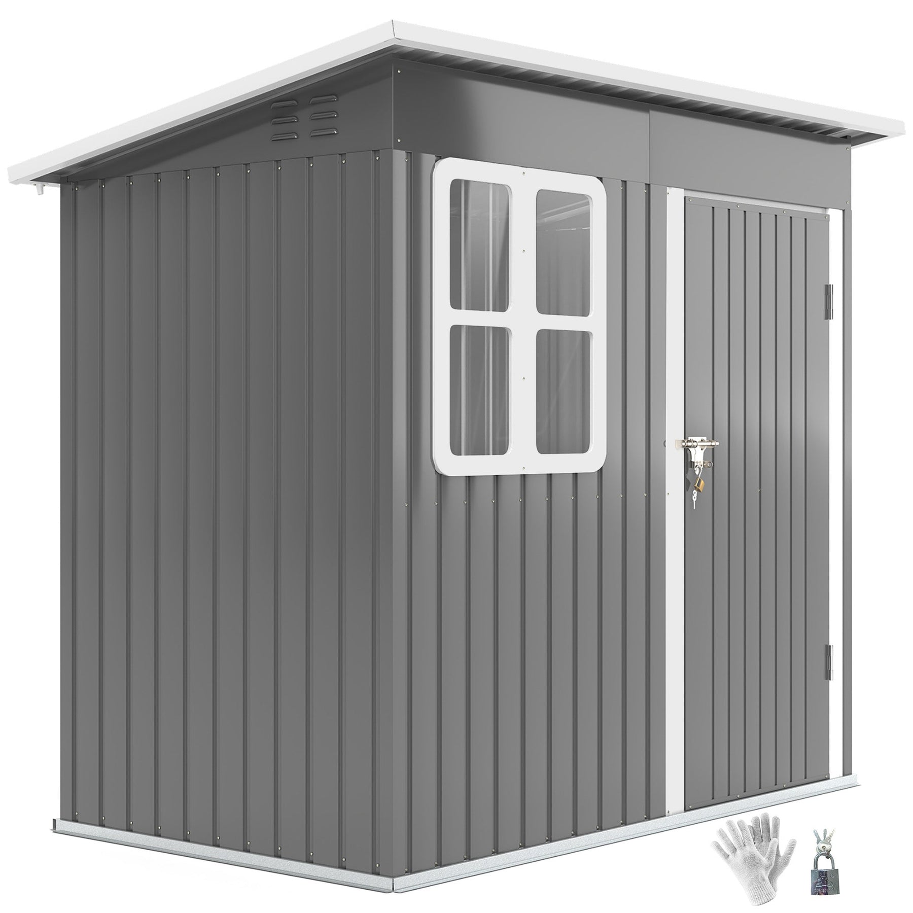 This spacious outdoor storage shed provides an ideal solution for organizing and storing garden tools, equipment, and other essentials. With generous dimensions of 83.1" x 52.4" x 74.8" (211 x 133 x 190 cm), it offers an ample interior space of 80.3" x 42.5" (204 x 108 cm), allowing you to easily store larger items. The shed is designed with a transparent window and built-in vents, ensuring natural light and proper airflow to keep your stored items comfortable and accessible. The secure 29.5" (75 cm) wide door features a latch and lock system, ensuring the safety and security of your belongings. Constructed from durable galvanized steel, this metal shed is waterproof and resistant to blisters, cracks, and warping, making it highly reliable even in challenging outdoor conditions. Assembly requires 2–3 people and approximately 3 hours to complete. For your safety, avoid installation in windy conditions and wear the included gloves for protection. This outdoor storage shed is an excellent addition to any garden or outdoor space.