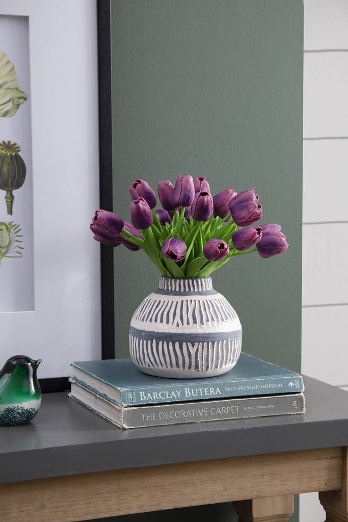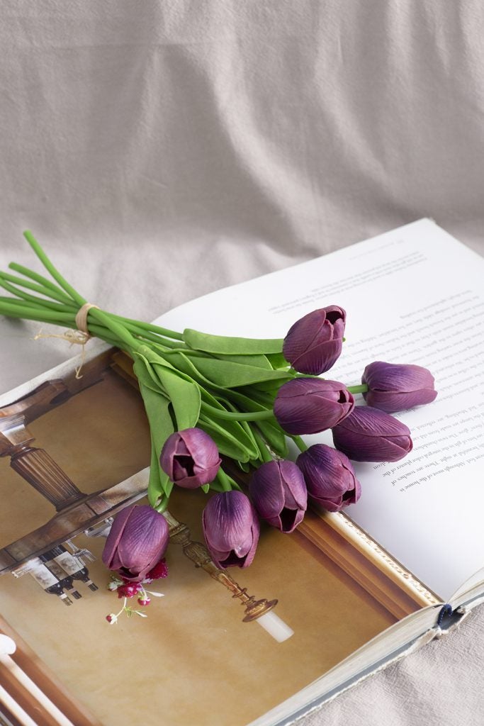 Bring everlasting beauty to your home with this Artificial Tulip 9-Stem Bundle in vibrant purple. Crafted from 100% PU, these lifelike tulips mimic the texture and look of real flowers, offering timeless charm without the need for maintenance. Perfect for table centerpieces, bouquets, or seasonal décor, this bundle of nine stems adds a fresh and elegant touch to any space.