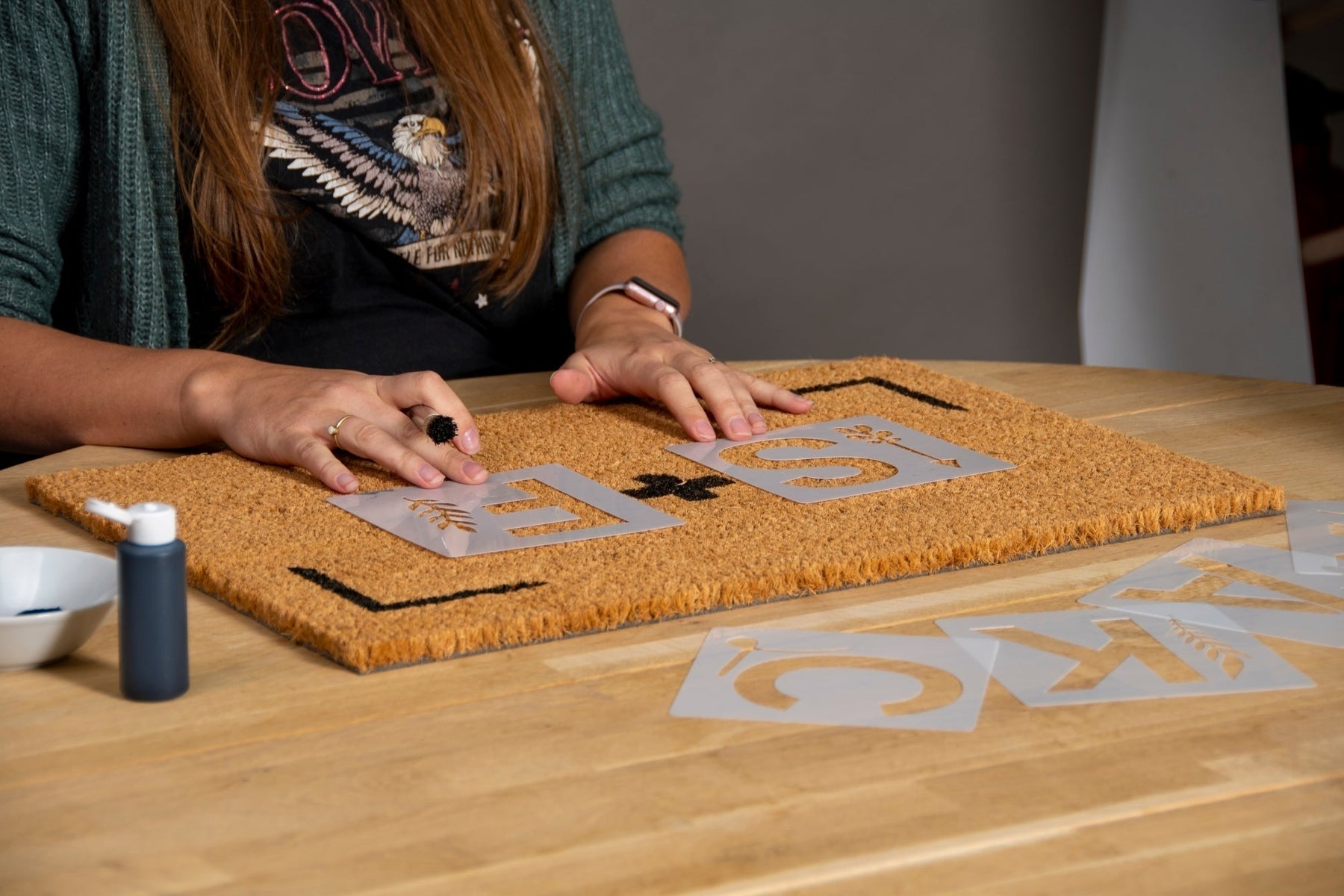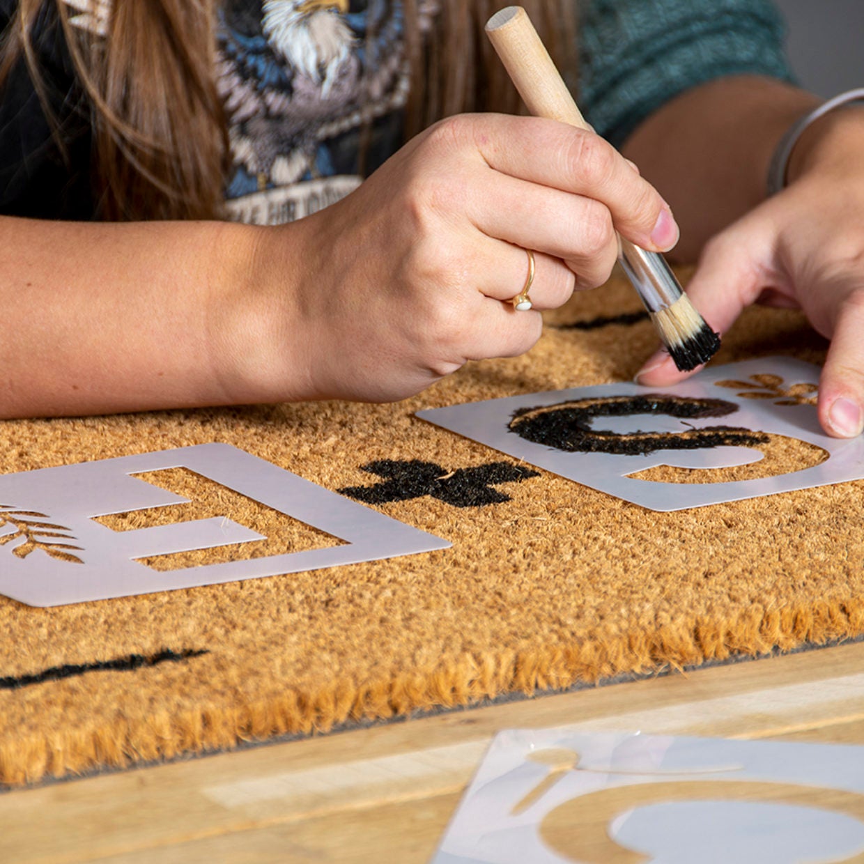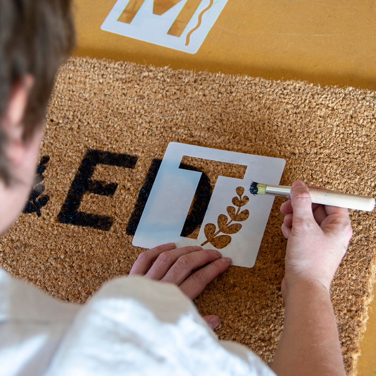 Includes: Doormat, Stencil Sheets, Brush, Doormat Paint