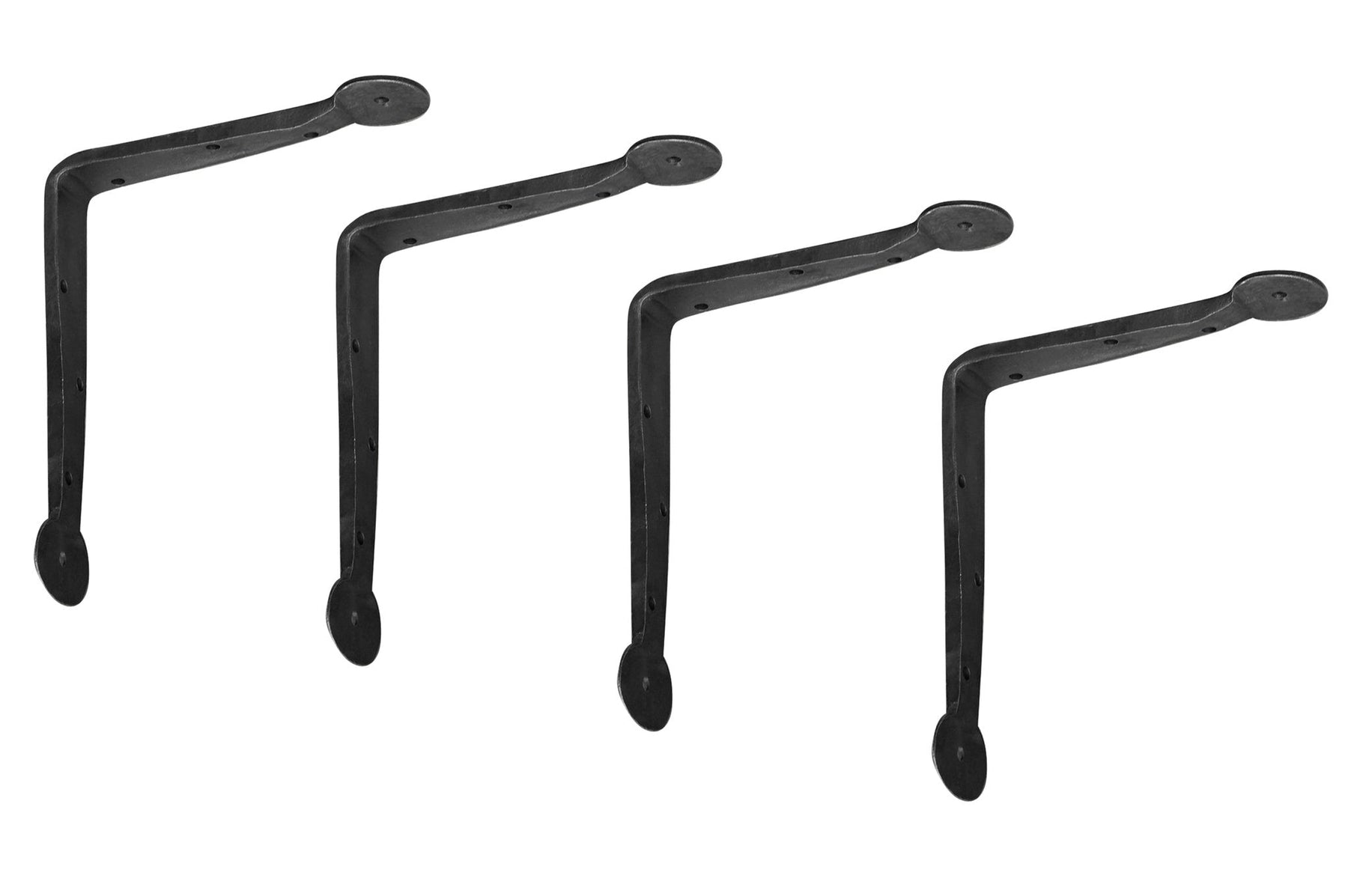 Add both strength and style to your shelves with this hand-forged black corner bracket. Crafted from durable metal, this bracket combines rustic charm with robust support, making it ideal for bookshelves, display units, or wall-mounted storage. Its compact size ensures a versatile fit for a variety of applications.