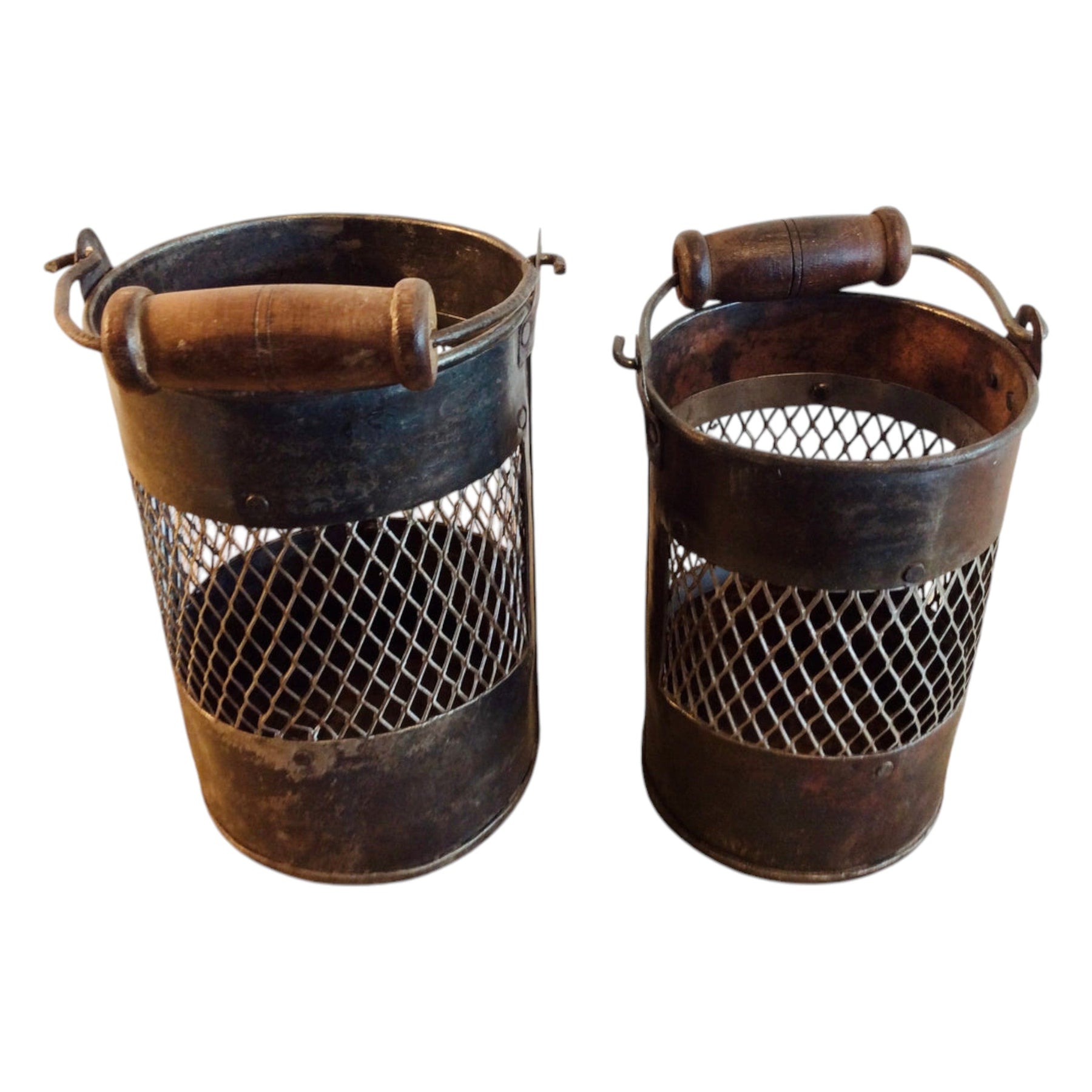 Lantern Bucket Set of 2 – Decorative Metal Lanterns, Rustic Charm