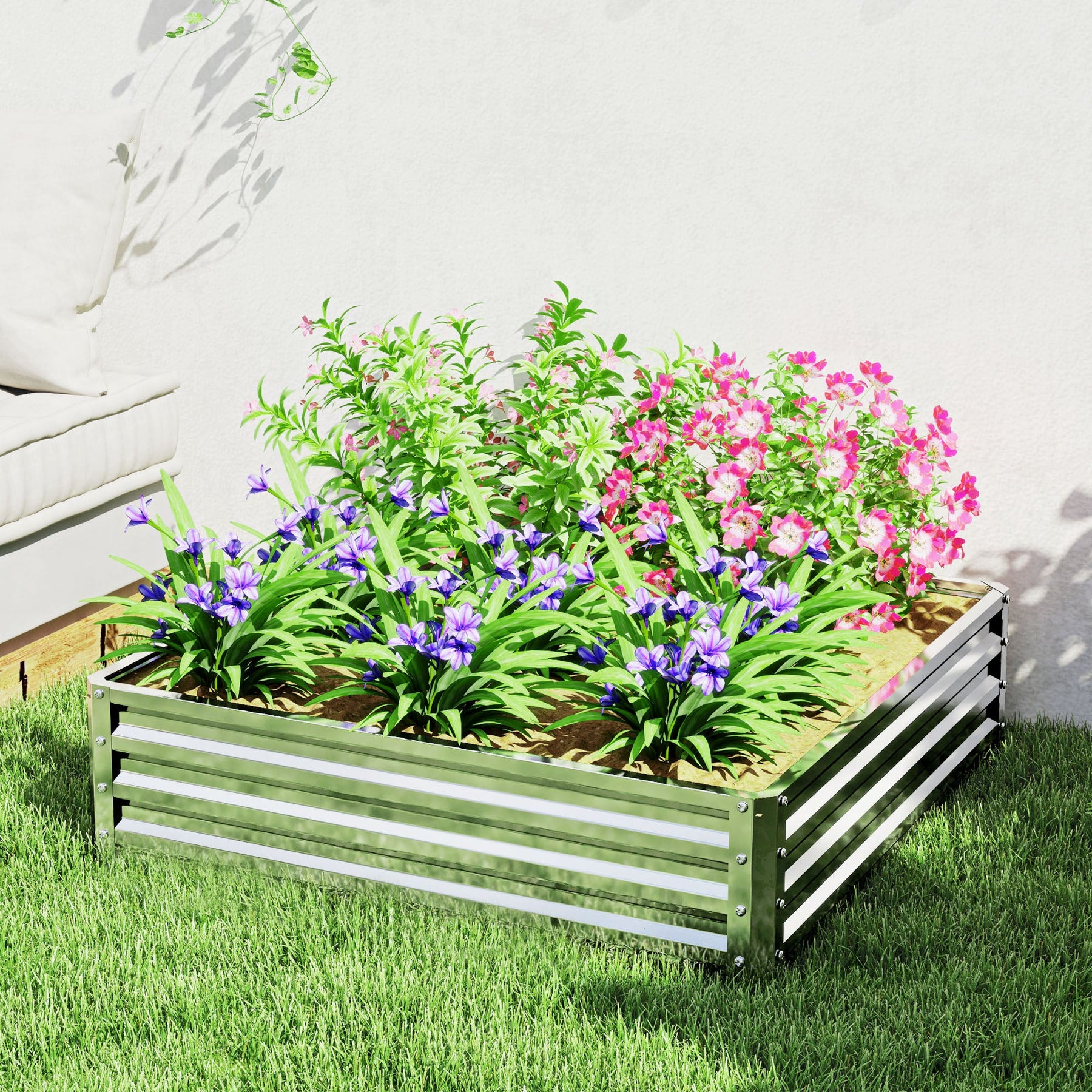 Outsunny 4' x 4' x 1' Raised Garden Bed Galvanized Steel Planter Box for Vegetables, Flowers, Herbs, Silver
