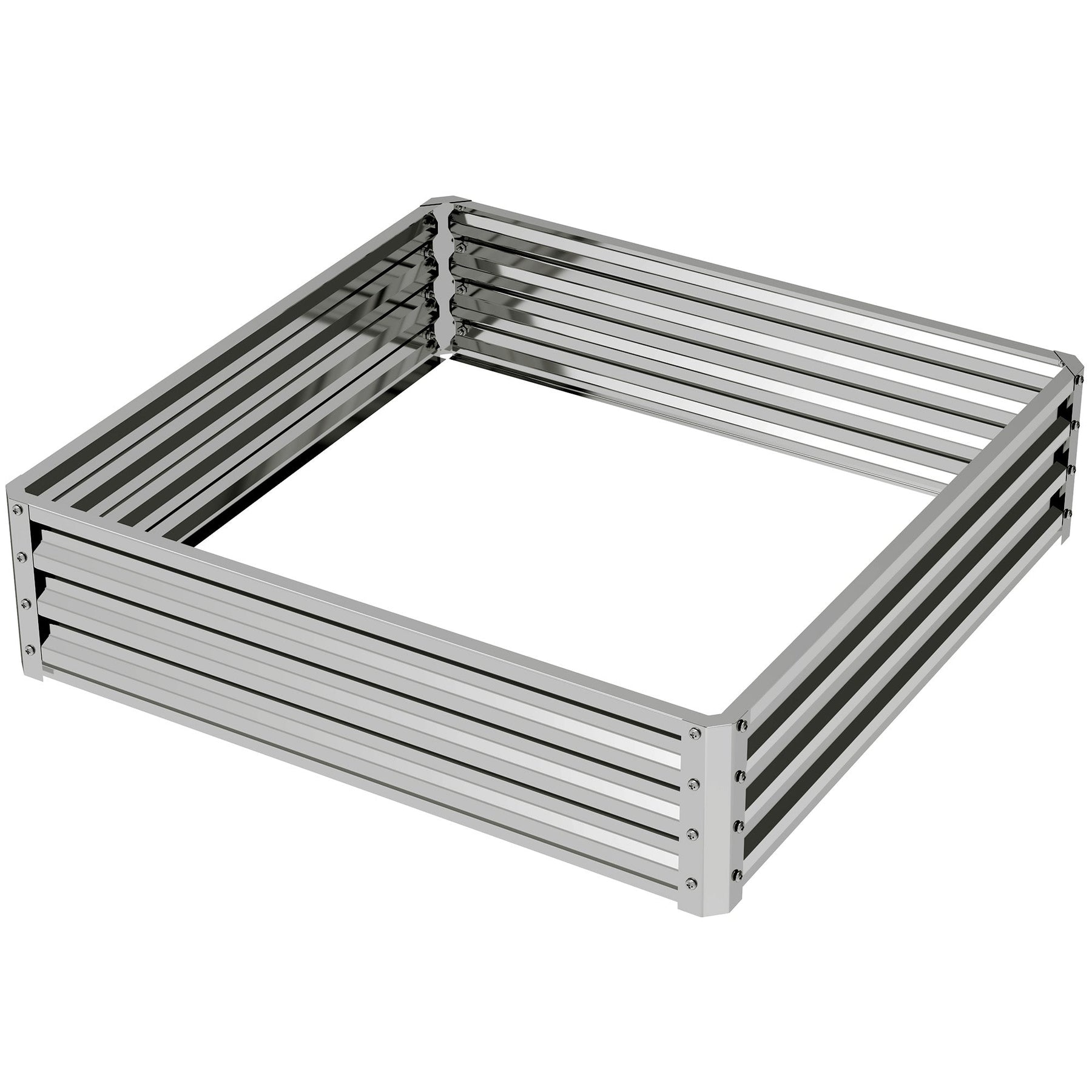 Give your garden the upgrade it deserves with this galvanized steel raised garden bed, designed to offer generous space for growing vegetables, herbs, flowers, and fruits. Its square shape and open-bottom design allow for deep root development and optimal drainage, ensuring your plants grow strong and healthy. Crafted from powder-coated galvanized steel, this planter box resists rust and water damage, making it ideal for year-round outdoor use. Whether you're planting seasonal greens or colorful blooms, this raised garden bed provides a structured, elevated solution that keeps your garden neat, organized, and productive. Setup is a breeze thanks to the four-panel and four-connector assembly, helping you get straight to the fun part—gardening. With a spacious and sturdy design, this raised bed is perfect for garden lovers of all experience levels.