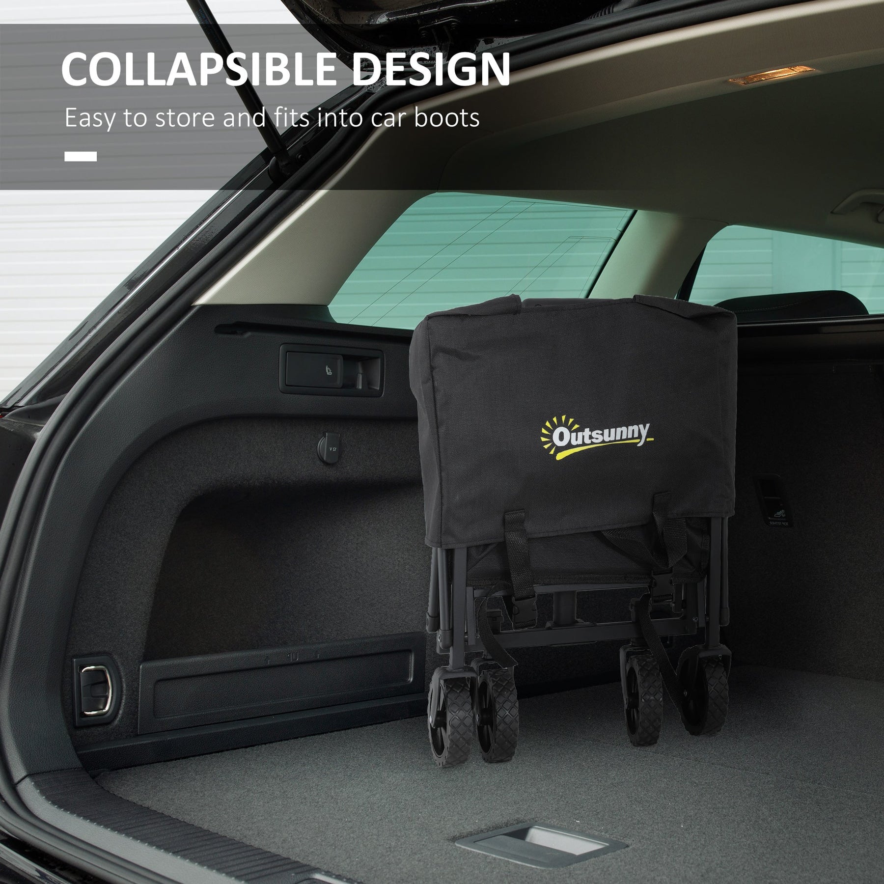 Make hauling essentials easier with this versatile garden wagon, offering a generous 10.8-gallon (41L) main compartment and two side pockets—perfect for transporting tools, beach gear, or camping supplies. The collapsible design folds compactly for easy storage in car boots or sheds, and a carry bag is included for added convenience. Built with a sturdy powder-coated metal frame and splash-resistant 600D Oxford fabric, it’s designed for long-term outdoor use. The extendable handle adjusts for better comfort and control, while the two universal wheels provide smooth movement on various terrains—from garden paths to sandy beaches.