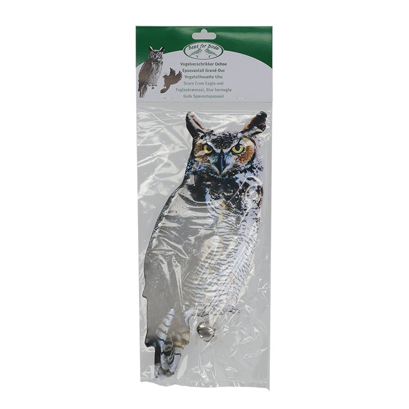 Protect your garden, orchard, or balcony from unwanted birds such as starlings and pigeons with this realistic Owl Scare Crow. Designed with a detailed photo print of an owl, it provides a bird-friendly method of deterrence that keeps your fruits, seeds, and plants safe. The included metal bell creates additional noise in the wind to reinforce the deterrent effect. Easy to hang with the strong suspension rope, this owl is both effective and decorative for outdoor use.