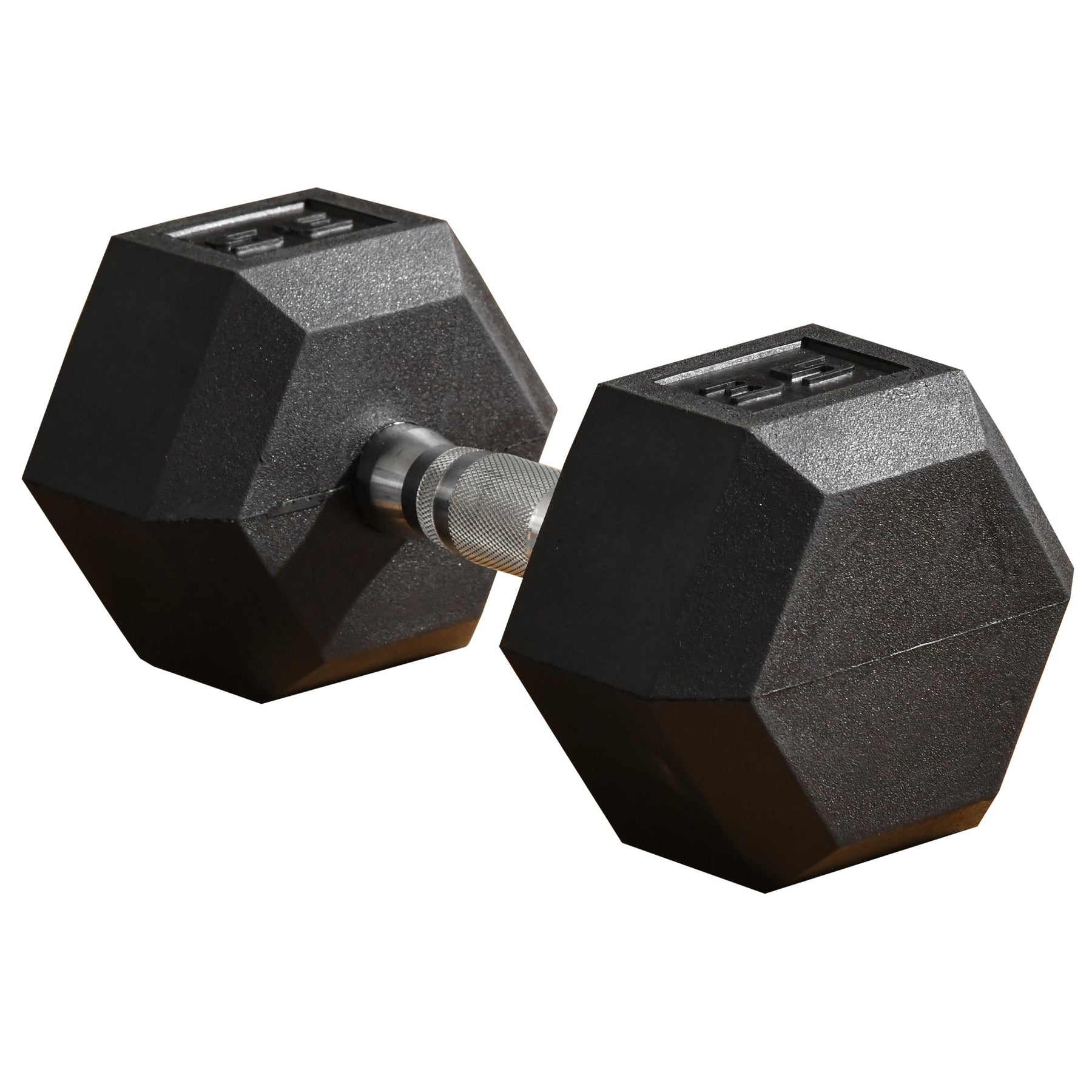 Enhance your full-body workout with this Rubber Hexagon Dumbbell Set. Perfect for both upper and lower body exercises, these durable dumbbells help you strengthen your arms, shoulders, back, and more. Crafted from steel and covered with a rubber coating, they are built to last and protect your floors from damage. The hexagon shape prevents the dumbbells from rolling during your workouts or while stored, providing added convenience. The solid metal handles feature a non-slip grip, ensuring a secure and comfortable hold during your exercise routine. Whether at home, the office, or the gym, these dumbbells are an essential addition to your fitness equipment.