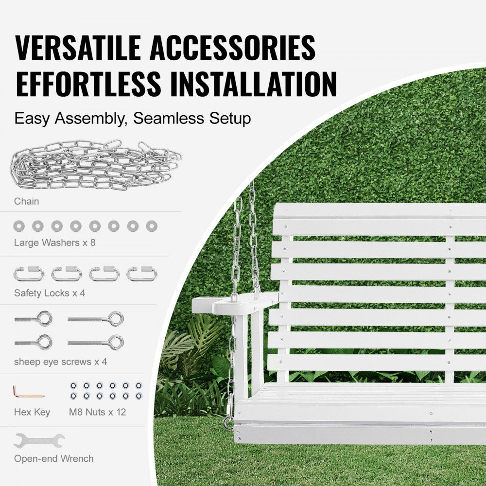 Relax in comfort and style with the VEVOR 5.5 FT Wooden Porch Swing, crafted to bring charm and durability to your outdoor space. Built with sturdy cedar wood and reinforced with steel chains, this heavy-duty swing supports up to 880 lbs—perfect for two adults. Featuring a convenient cup holder design on both sides, it’s ideal for enjoying a cool drink while lounging. The white finish and classic slatted design blend beautifully with any patio, garden, or porch décor. Easy to install and maintain, this swing offers a secure, comfortable retreat all year round.