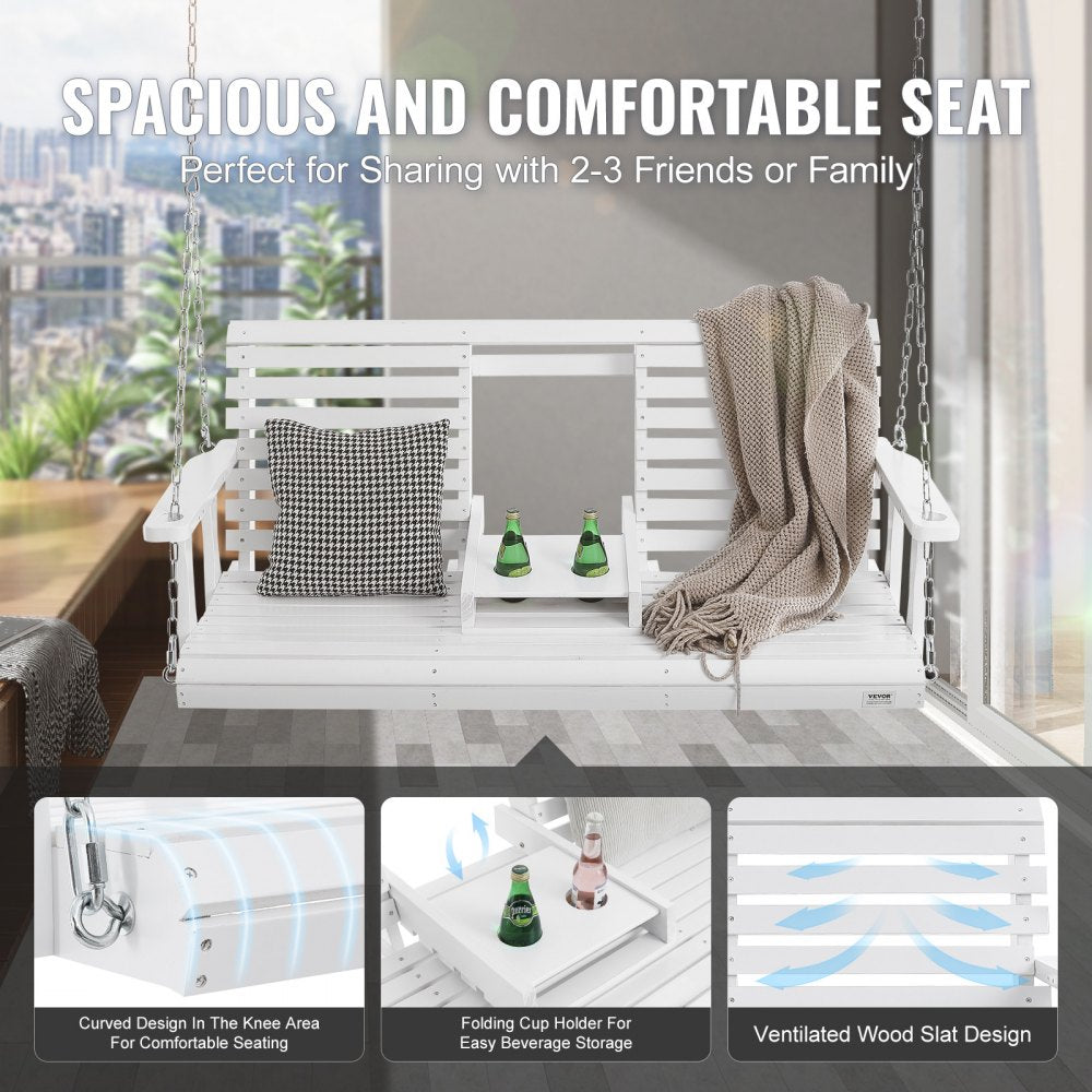 Relax in style with the VEVOR 5 ft Wooden Porch Swing, designed for both comfort and durability. Featuring an upgraded 880 lbs load capacity, this heavy-duty swing bench is perfect for your outdoor patio, garden, or courtyard. Made with high-quality cedar wood and steel chains, it is built to withstand the elements and provide years of use. The swing also includes convenient cup holders, ensuring your drinks are always within reach as you enjoy the outdoors. Easy to install and maintain, this swing is perfect for relaxation and entertaining guests.