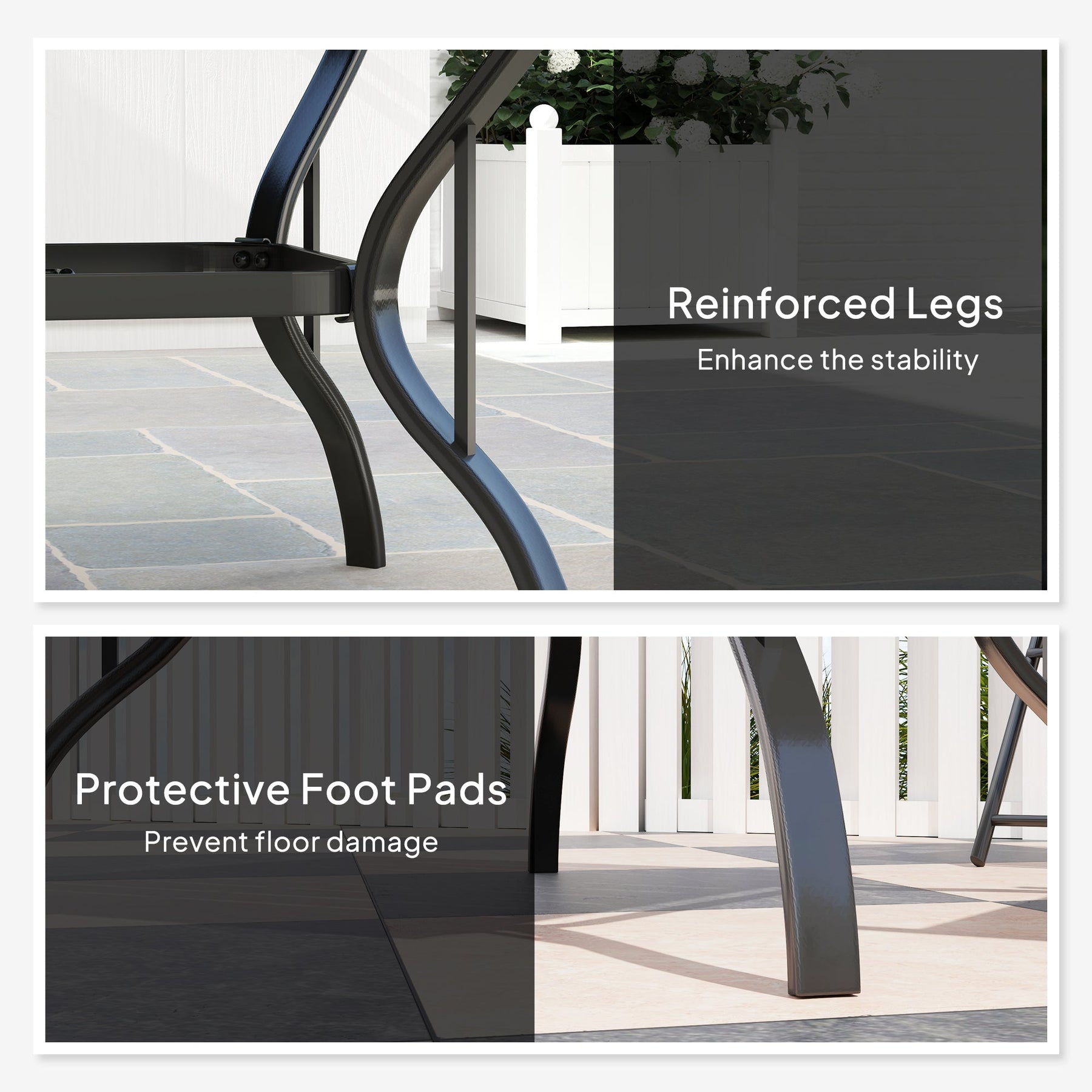 Anti-slip footpads protect floors and provide added stability.