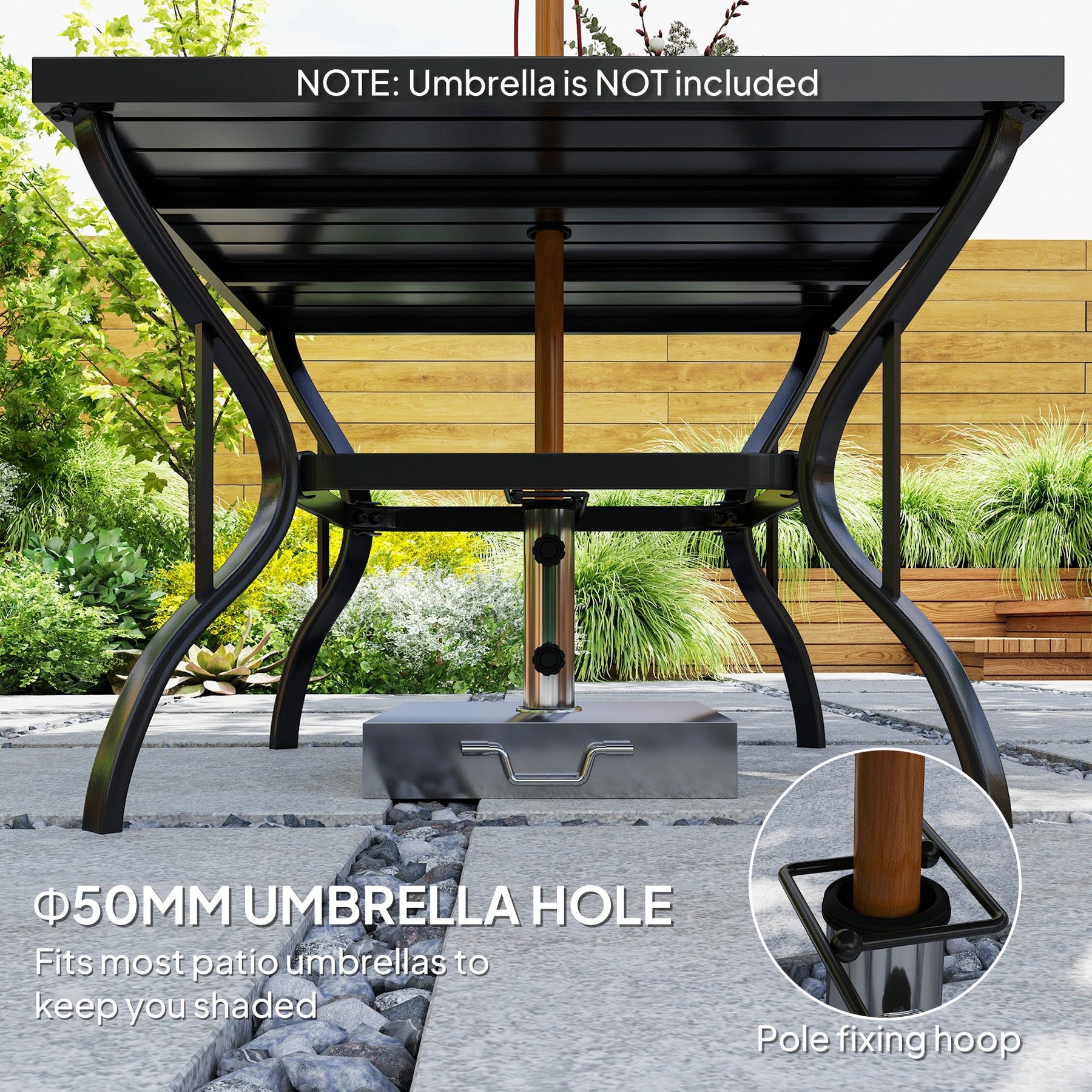 Equipped with a Dia. 2" (5 cm) umbrella hole, perfect for staying cool under the sun.