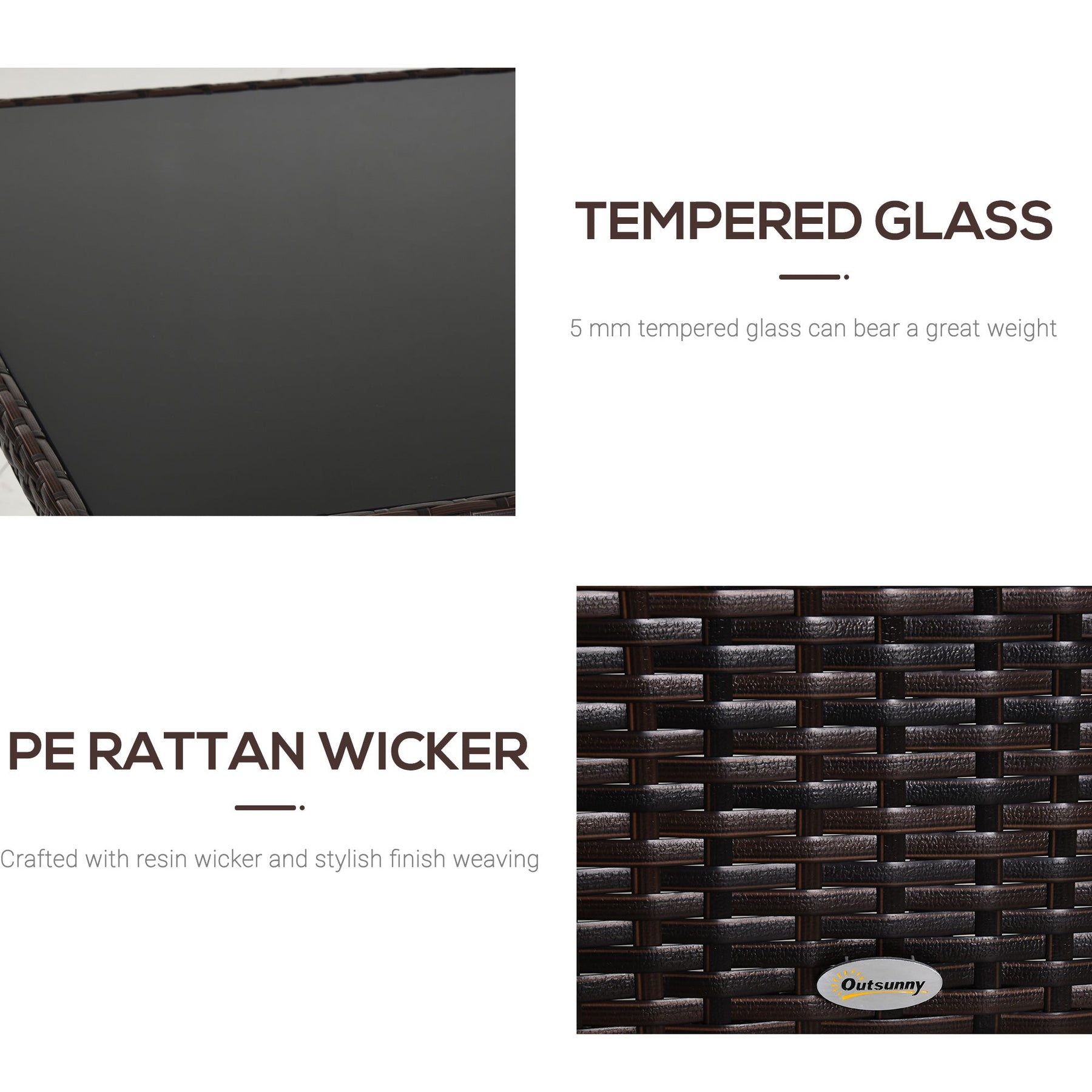 Outsunny Patio Rattan Dining Table with Glass Top Storage Shelf Yard Furniture 59"x34"x29" Brown
