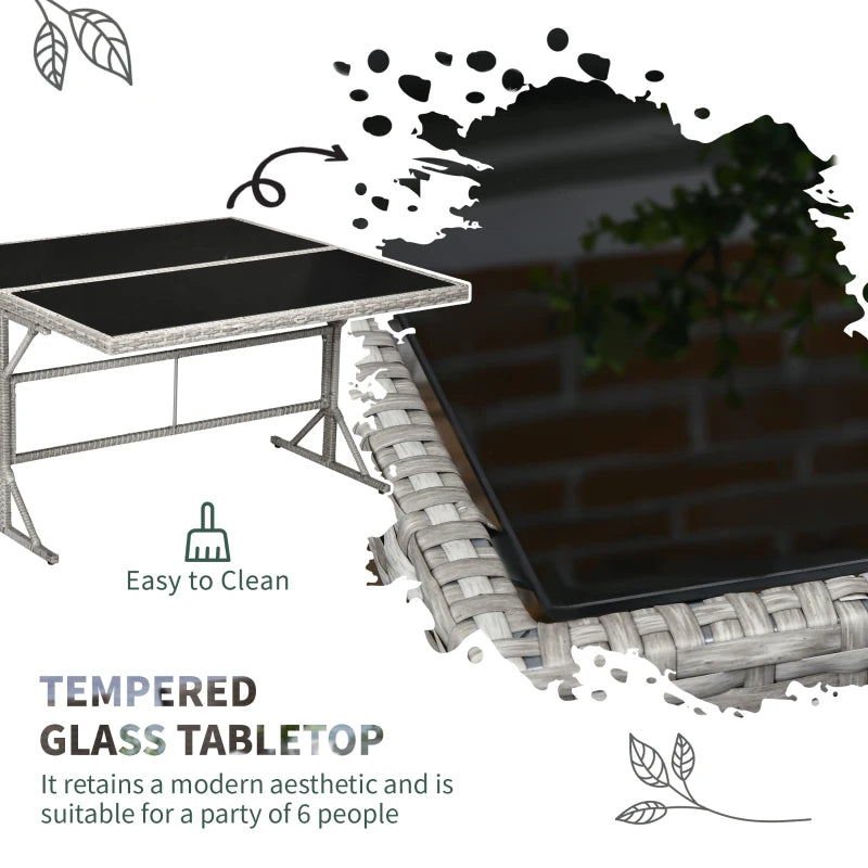 This dining set is designed with outdoor time in mind, made with a sturdy galvanized steel frame and weather-resistant PE wicker. With its spacious design and durable materials, this set is perfect for year-round use. Get ready for outdoor gatherings
