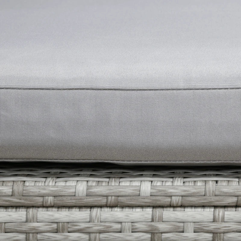 This 5-piece dining set is perfect for enjoying time with your loved ones. It includes 2 loveseats, 2 two-seater benches, and a square central table that can seat up to 6 people. When not in use, the ottomans can be neatly stored under the table, making it a space-saving solution for your outdoor area.