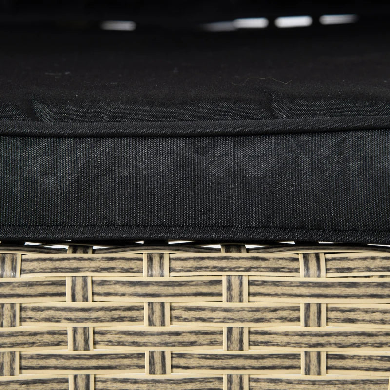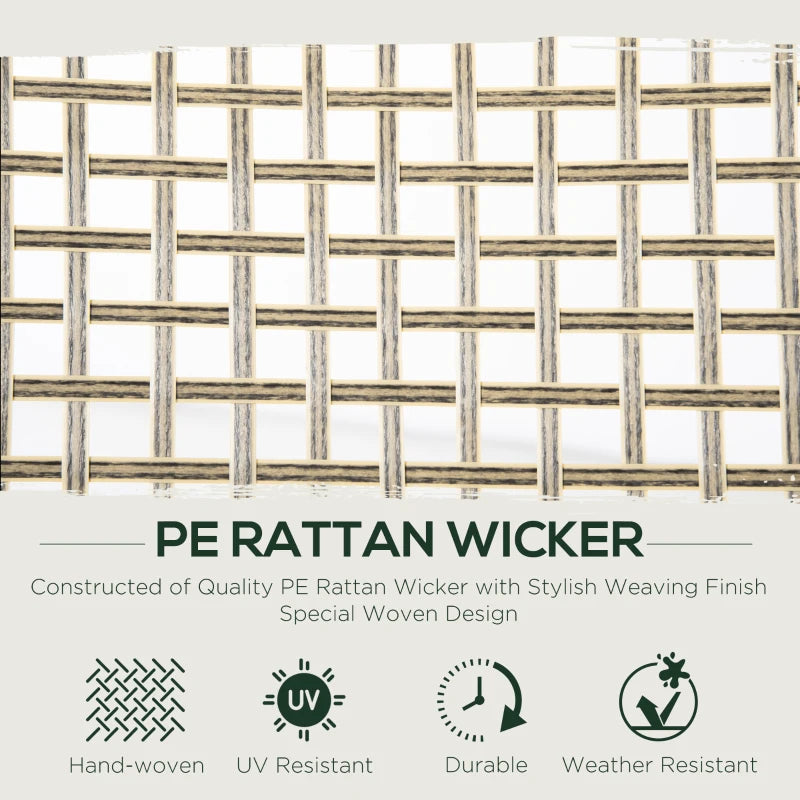 Made with a galvanized steel frame and PE rattan wicker, this set is resistant to UV rays and light water damage. The attractive and sturdy table-top allows for comfortable dining, and the cushions and pillows provide extra comfort.