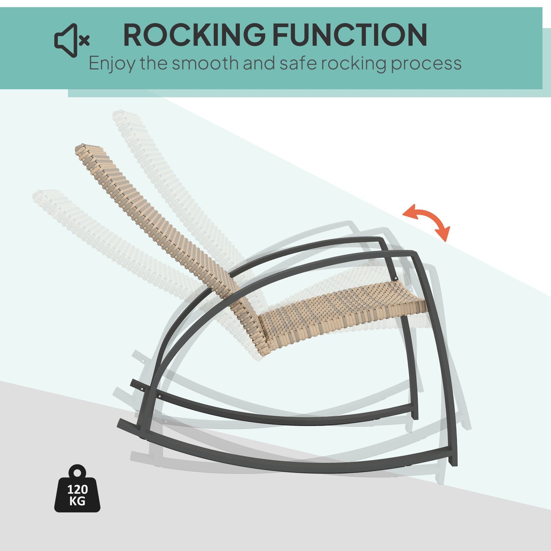 Outsunny 2 Pieces Wicker Patio Rocking Chair Set, Rattan Outdoor Rocking Chair Set with High Back, Armrests for Garden, Khaki