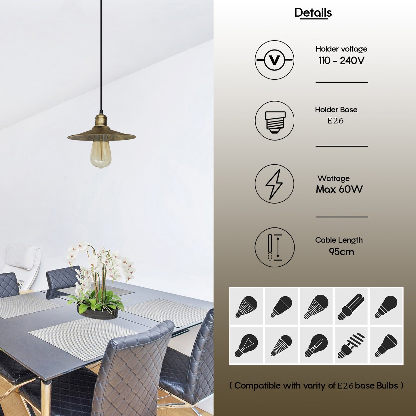 - 1 X Pendant Lamp Base