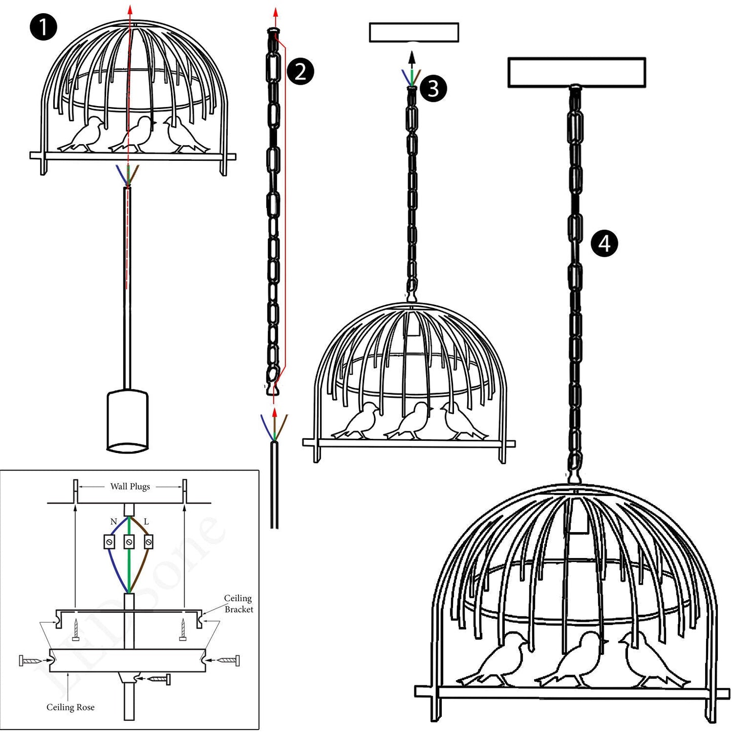 • 1 x Bird Cage Pendant Light only. (Bulb is not included).