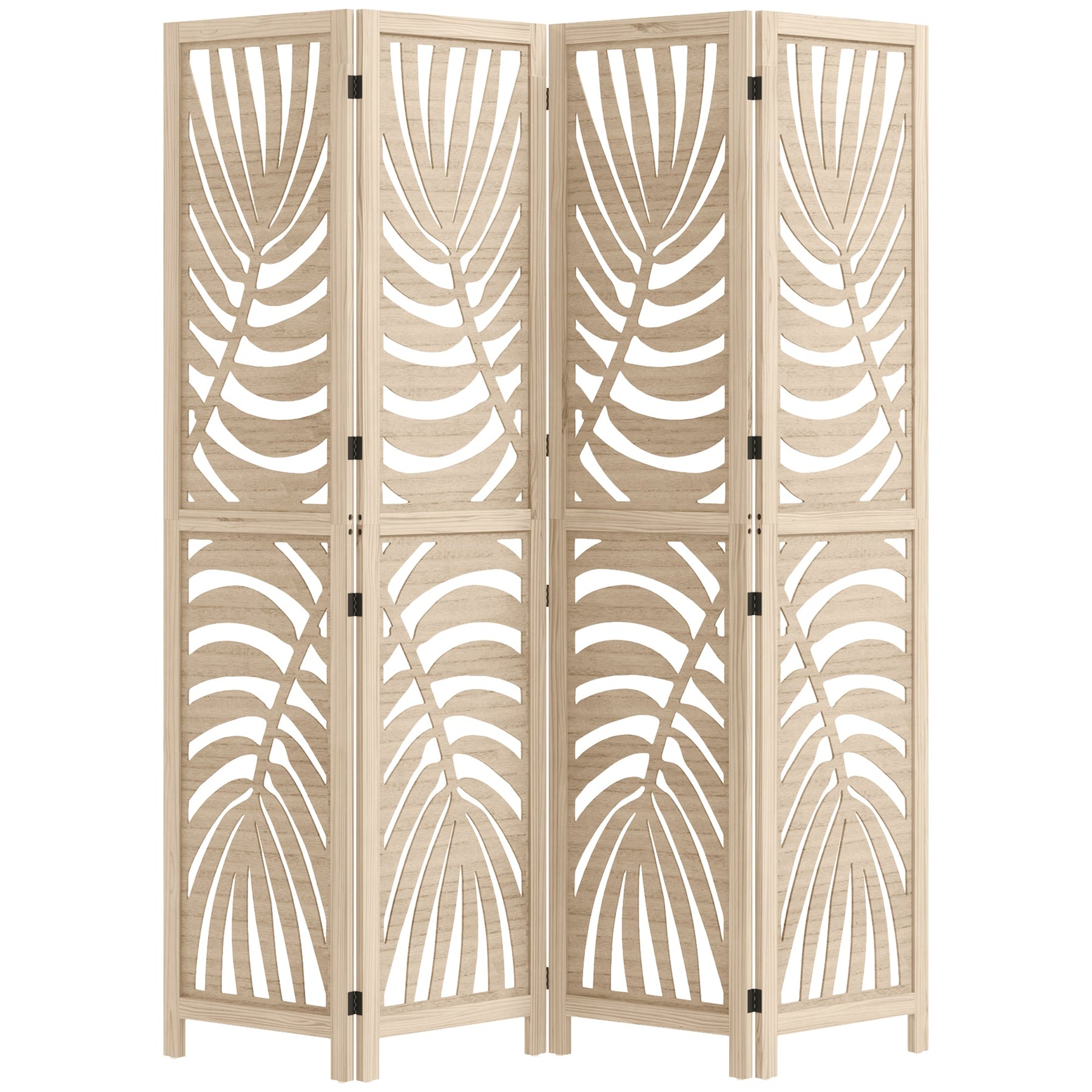Redefine your living space with this stylish and functional four-panel room divider, designed to enhance both privacy and aesthetics. Its unique detachable design allows the top and bottom sections to be separated, providing flexibility to use as two independent screens or as a single full-length partition, perfectly adapting to your changing spatial needs. Crafted from solid paulownia wood, this privacy screen offers sturdy and long-lasting support while maintaining air circulation. The captivating tropical palm leaf pattern adds a touch of sophistication and tropical charm, transforming any room into a serene retreat. With its foldable design and 12 metal hinges, you can easily adjust, rearrange, or store the divider as needed. Lightweight yet durable, it’s simple to move between rooms or fold flat for compact storage. Whether for dividing a shared space, creating a cozy nook, or adding a decorative flair, this room divider offers the perfect balance of style, function, and convenience.