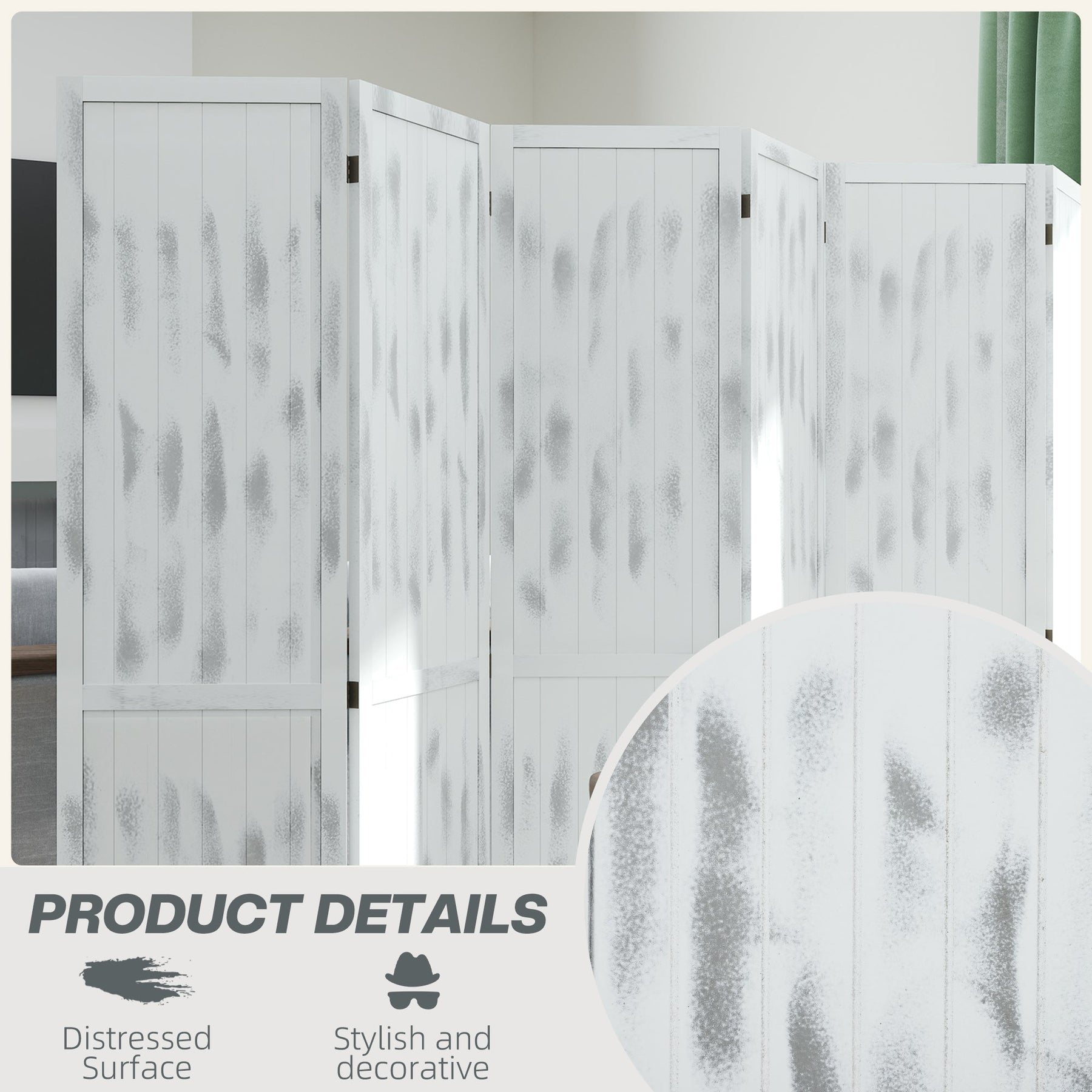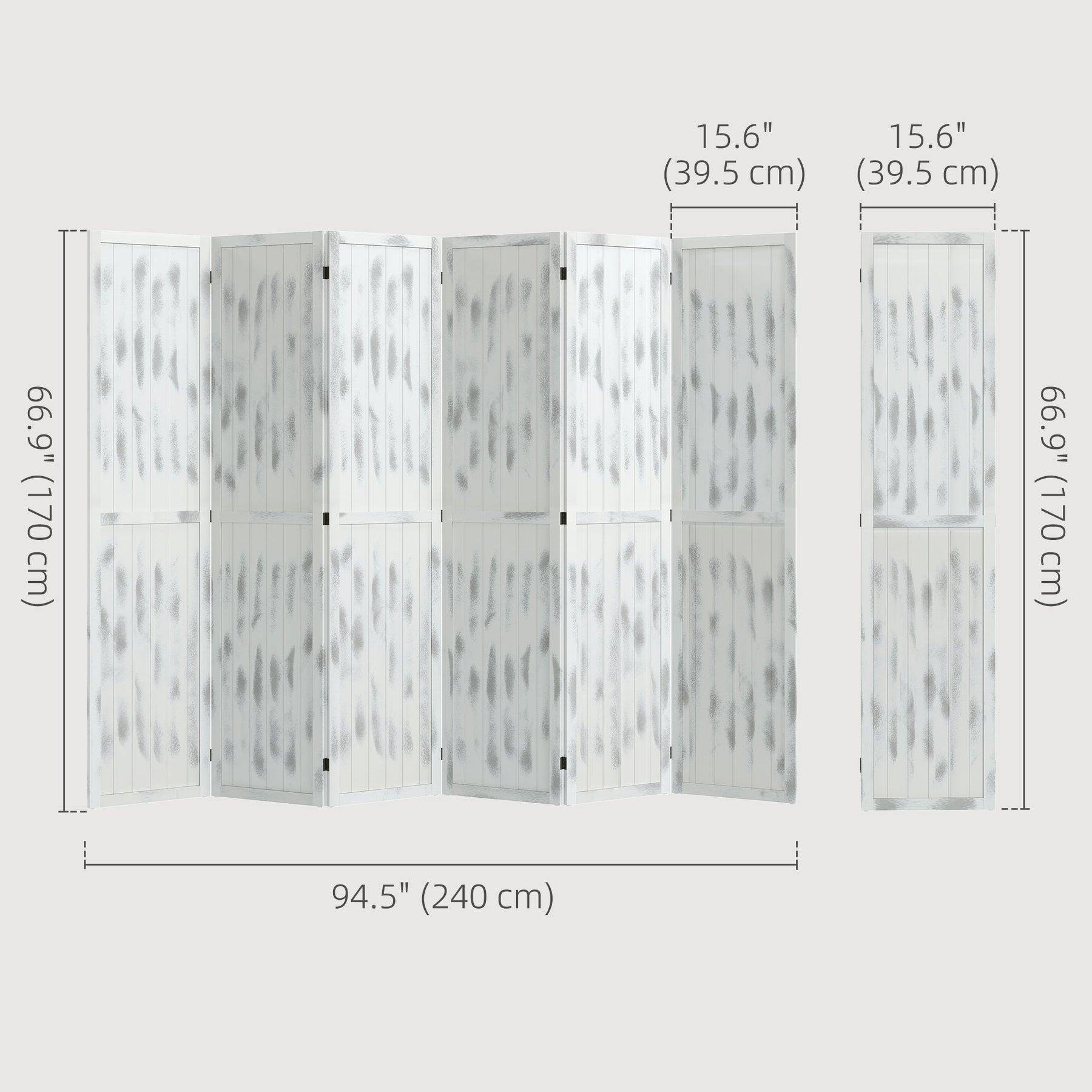 Enhance your space with this stylish six-panel room divider, designed to add privacy and functionality wherever needed. Whether you’re looking to divide a large room or create a private corner within a single space, this divider is the perfect solution. Its wood-grain whitewashed surface adds a rustic charm that complements any living room, bedroom, or home office. Made with solid wood panels and 15 connecting metal hinges, the divider is sturdy, smooth, and easy to unfold or fold for storage. The easy-to-fold design allows for effortless movement and convenient storage in any corner when not in use. No assembly is required—simply set it up and enjoy your added privacy!
