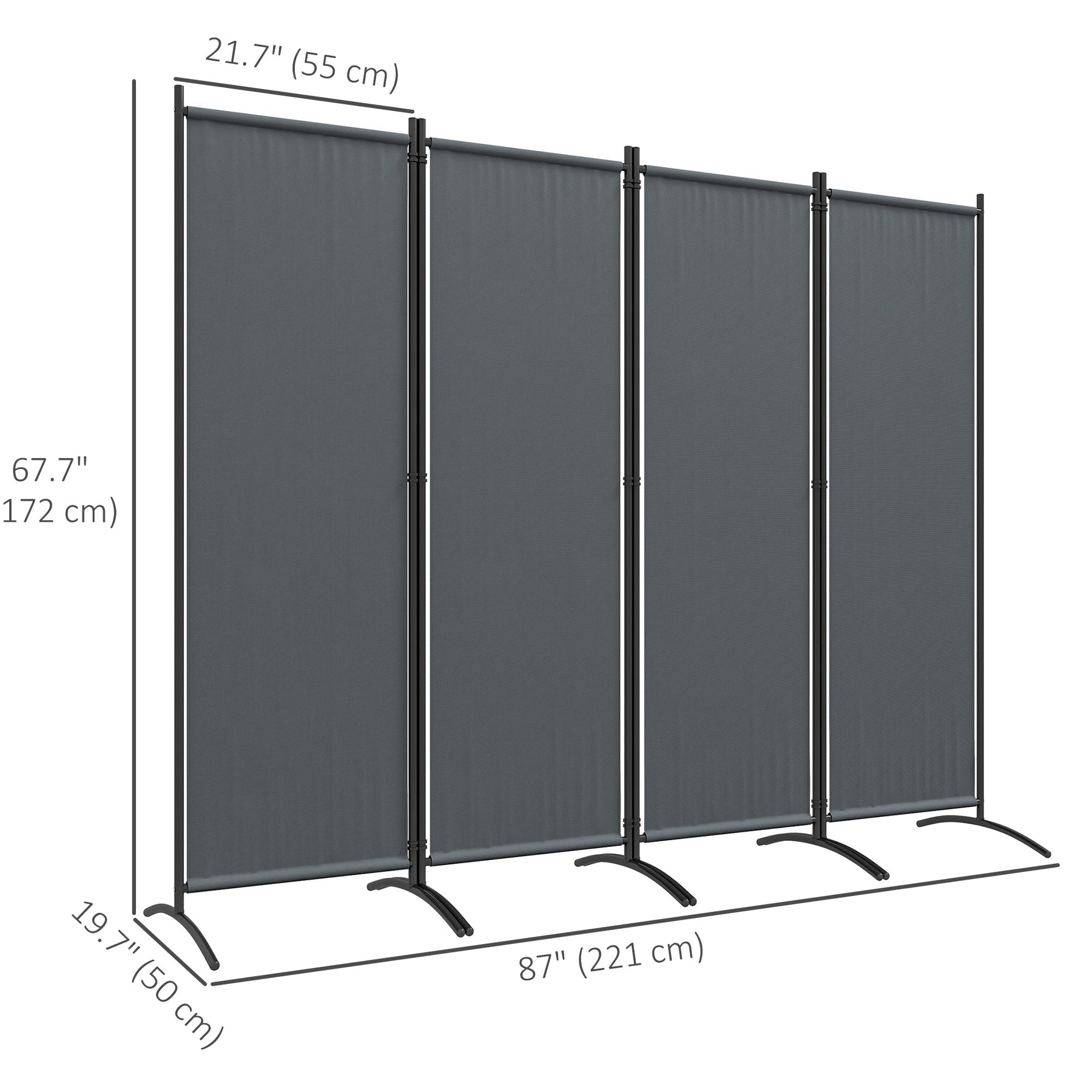 This 4-panel room divider is an ideal solution for adding instant privacy wherever you need it. Perfect for dividing large rooms or creating a smaller, enclosed private space, it also serves as a side sunshade cloth to block the setting sun. Its foldable design allows the panels to be easily adjusted into L-shape, W-shape, and C-shape formations, or compactly stored when not in use. The privacy screen can be configured in different ways, with individual panels or combined into a unit using the included clips. Made with a sturdy metal frame coated to prevent rust and 180gsm polyester fabric that provides a non-see-through barrier, this privacy screen ensures you have the privacy you need. Quick to set up and easy to assemble, it's perfect for both outdoor and indoor spaces.