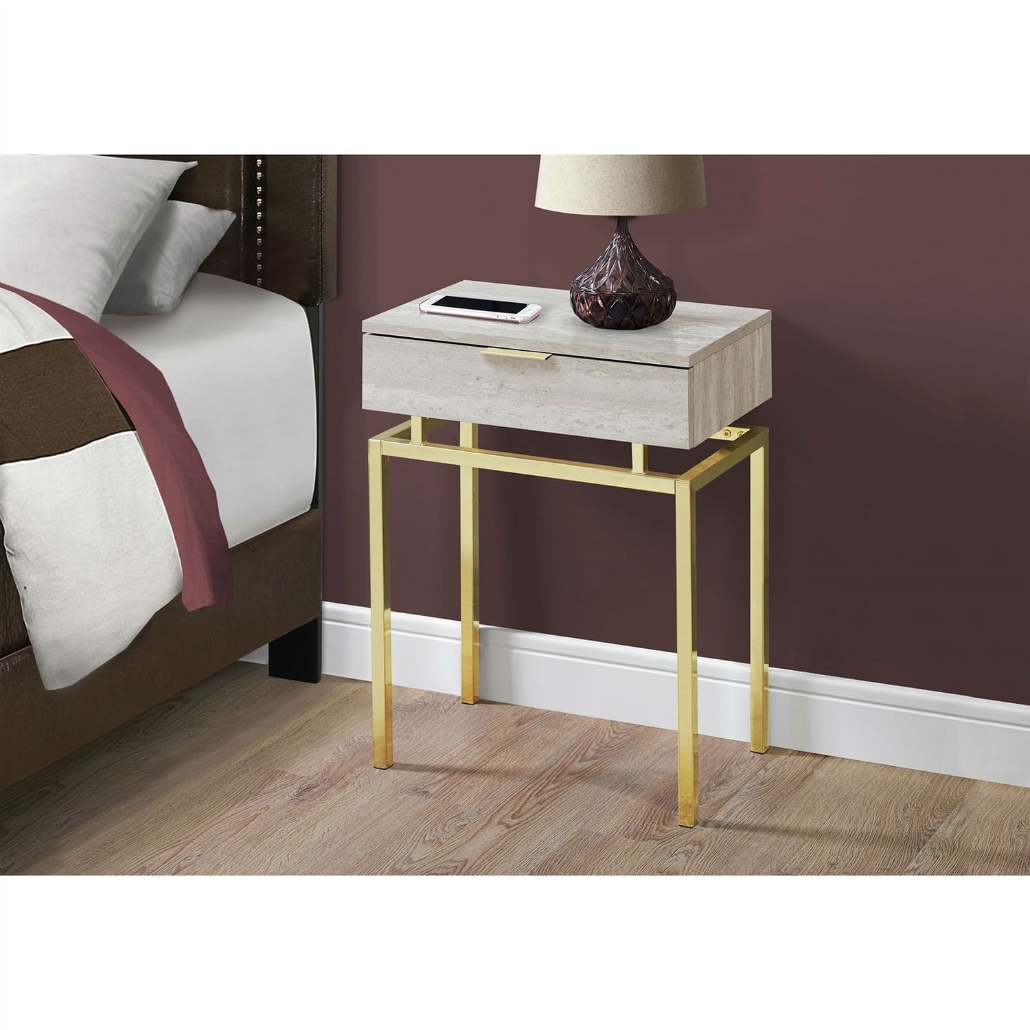 24in Modern End Table 1 Drawer Nightstand Beige Marble Gold Legs - Free Shipping