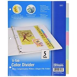Pack Includes: 1 set of 3-ring dividers with 5 color tabs.