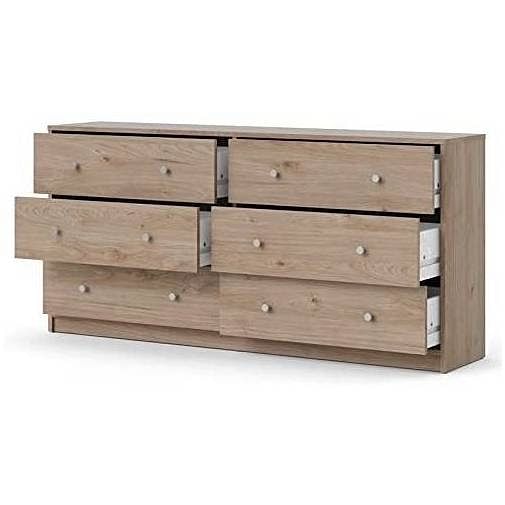 Elevate your storage solutions with the Farmhouse Contemporary 6 Drawer Double Dresser in Oak. Featuring a simple yet sophisticated design, this dresser includes six high-sided drawers with clean lines and a smooth finish. Perfect for both kids' rooms and master bedrooms, it offers ample storage to keep your wardrobe organized and clutter-free.