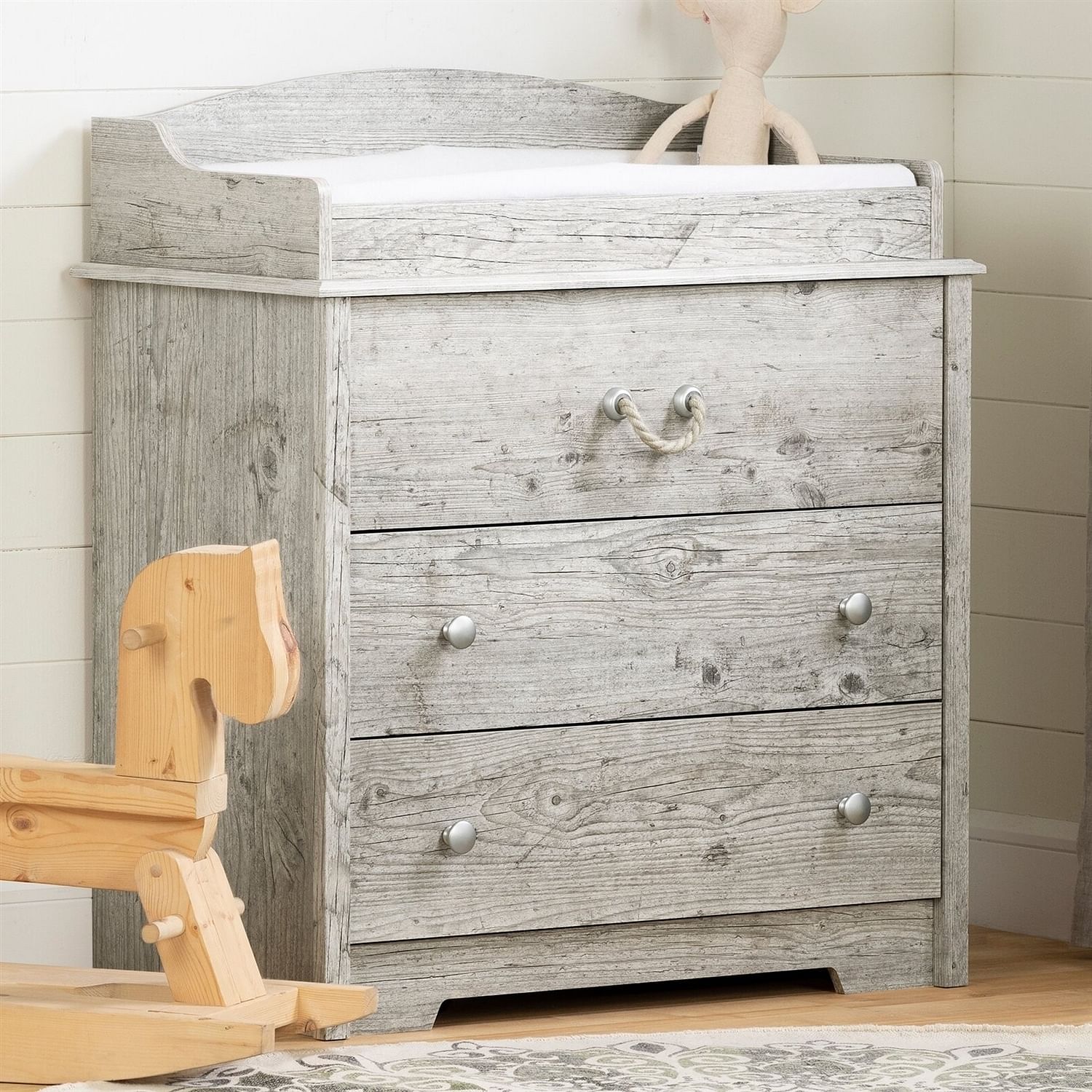 Introduce rustic nautical elegance into your nursery with the Farmhouse Nautical 3 Drawer Rope Handle Baby Changing Table. This stylish piece not only serves as a practical changing table but also doubles as a chic dresser, making it a versatile addition to any coastal-themed room.