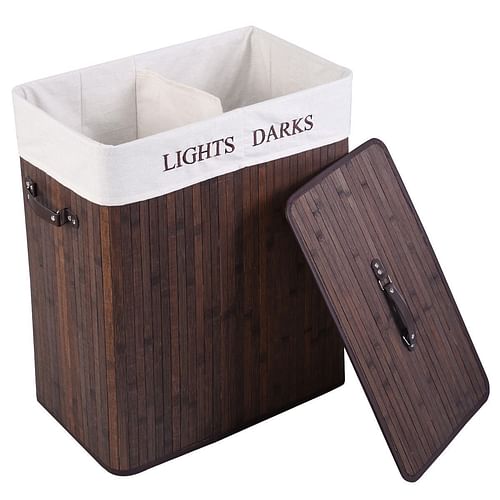 Elevate your laundry routine with the Folding 2-Bin Brown Bamboo Laundry Hamper. Combining durability with elegance, this hamper is crafted from high-quality bamboo and designed to keep your laundry neatly sorted and easily accessible.