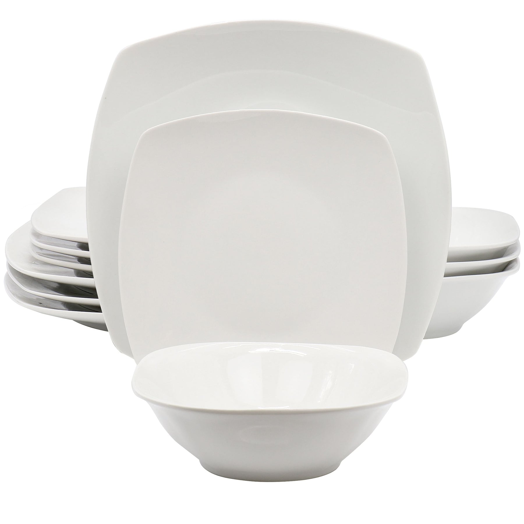 Enhance your dining experience with the Gibson Home Blanca Cafe Dinnerware Set. Featuring a sleek, glossy ceramic construction and a contemporary square shape, this set is designed for both style and functionality, making it perfect for any meal.