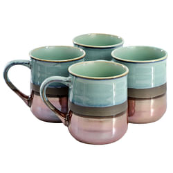 Gibson Home Copper Tonal 4 Piece 18 Ounce Stoneware Cup Set in Sage - Free Shipping