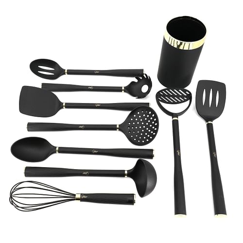 Upgrade your kitchen with the Gibson Home Hampsbridge 10 Piece Kitchen Tool Set and Utensil Crock, and enjoy the convenience and elegance it brings to your cooking experience.