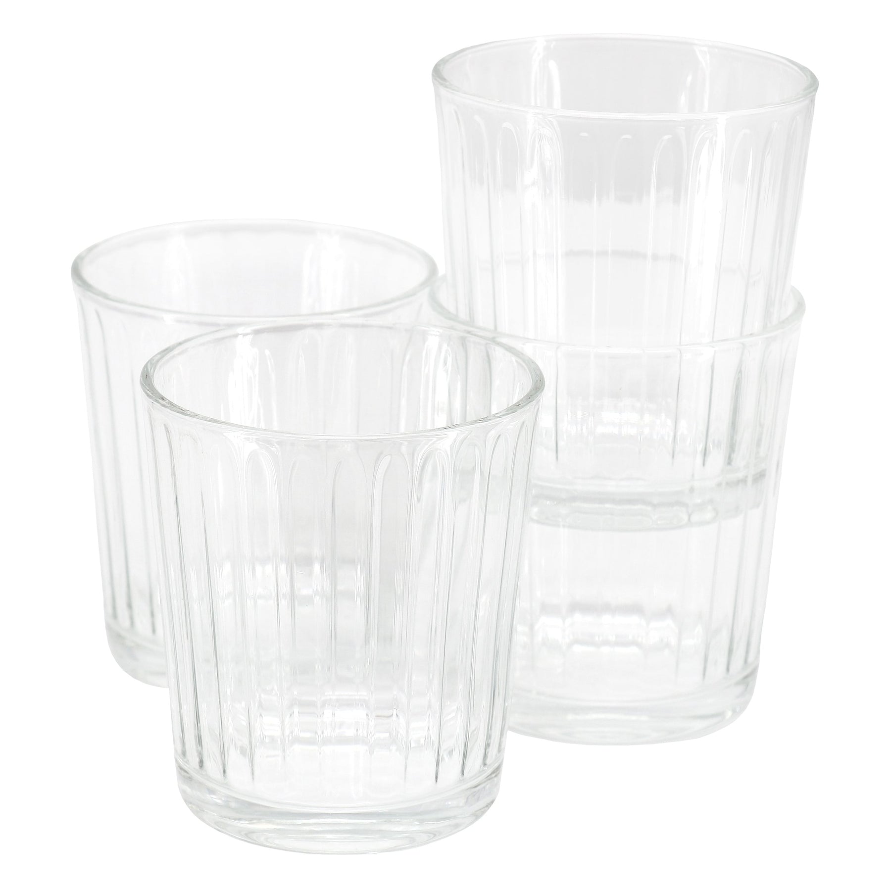 Enhance your home bar or dining table with the Gibson Home Moonstone 4 Piece Double Old-Fashioned Glass Set. Crafted with elegant glass construction and featuring a delicate embossed interior, these glasses add a sophisticated touch to any beverage. Ideal for serving ice-cold drinks, they are sure to impress your guests with their timeless yet contemporary beauty.