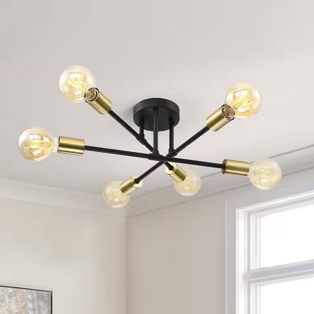 This stylish ceiling light fixture features a distinctive Sputnik design that combines nostalgic charm with contemporary appeal. The multi-directional 6-light arrangement offers versatile lighting options to suit your needs, while the black and gold finish adds a sophisticated flair to any room.