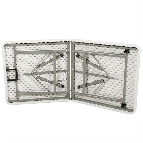 This 4-foot center folding table is perfect for a range of uses, from outdoor events to indoor gatherings. Constructed from eco-friendly, recycled HDPE material and supported by heavy-duty 25-gauge steel legs, this table offers both durability and stability. It’s designed to withstand high temperatures and heavy loads, making it a reliable choice for any setting.
