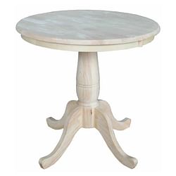 Elevate your dining experience with the Round 30-inch Unfinished Solid Wood Dining Table, featuring a classic pedestal base that adds both elegance and stability to your dining area. Crafted from solid Parawood, this table blends seamlessly with traditional, rustic, and cottage-style home decor. Ideal for both casual and formal settings, it comfortably seats four people and provides a durable surface for years of functionality.