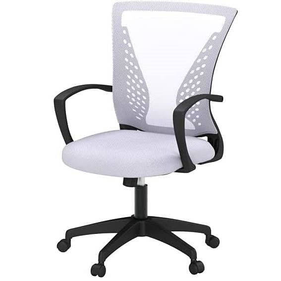 Enhance your workspace with this White Modern Mid-Back Office Desk Chair. Designed with ergonomic features and a sleek mesh back, this chair combines comfort and style for an optimal work environment. Perfect for home offices, desks, and more, it supports you through long work hours with ease.