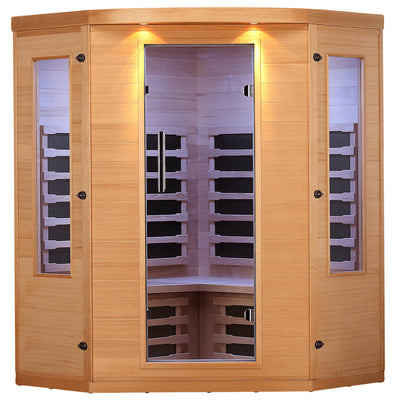 Aspen 4-Person Infrared Corner Sauna | Canadian Hemlock Wood with Bluetooth, LED & Aromatherapy