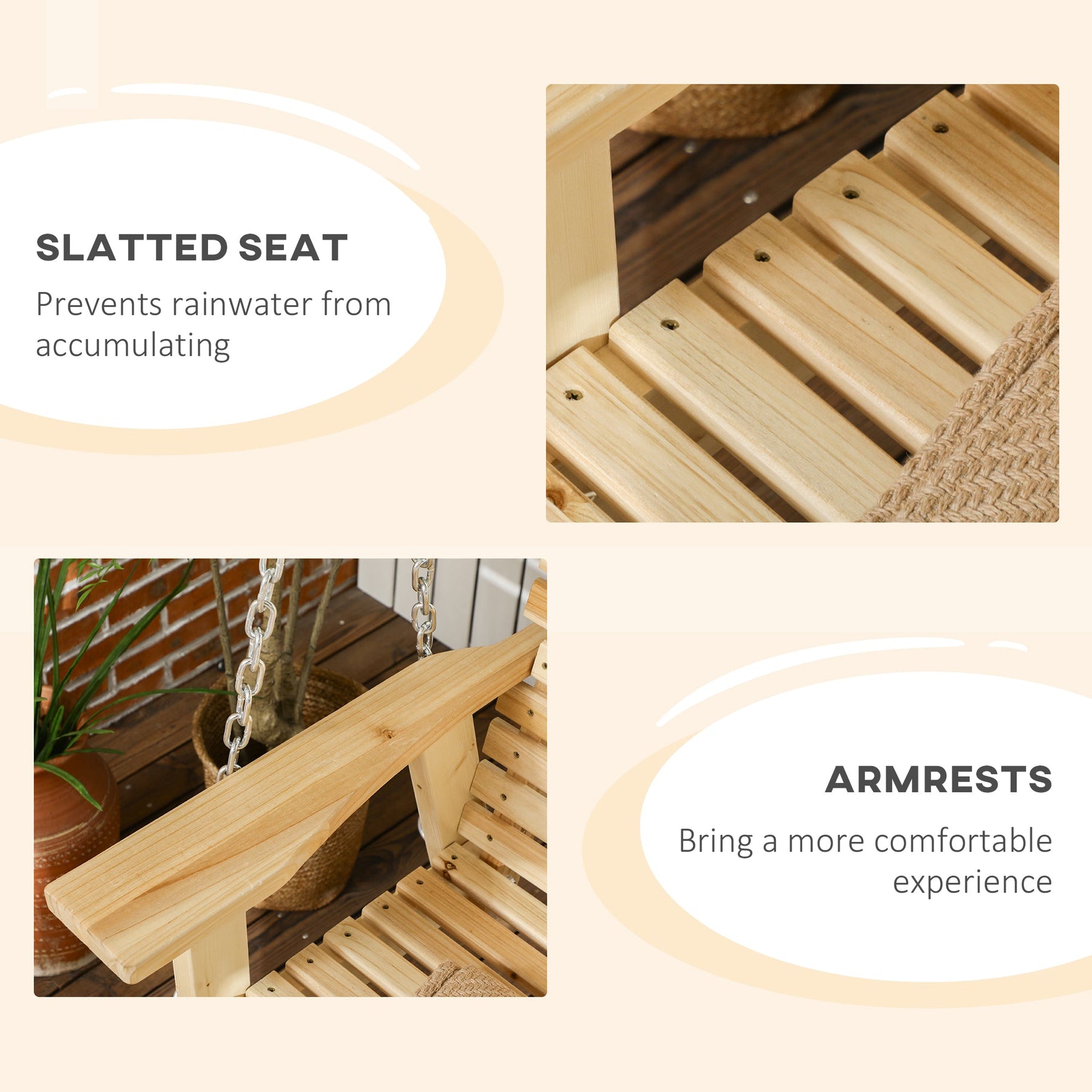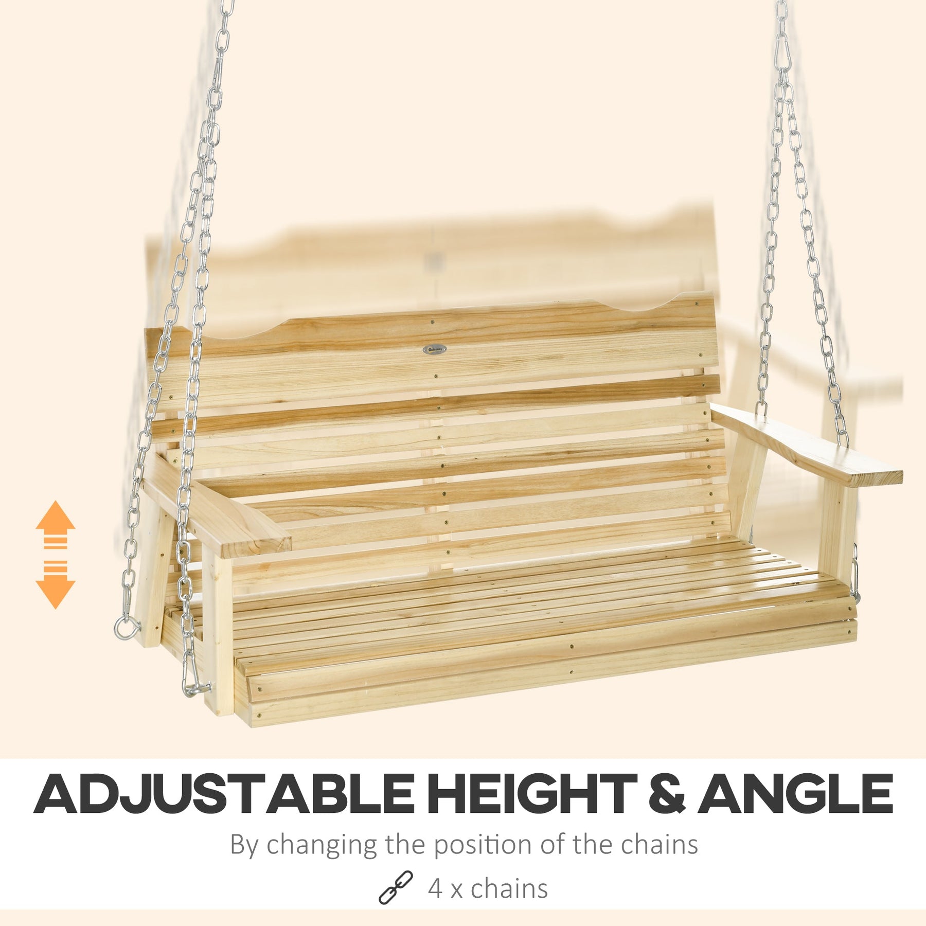 Relax and enjoy the outdoors with our Wooden Swing Chair. Designed to accommodate up to 2 adults with a generous weight capacity of 440 lbs (200 kg), this swing is perfect for gatherings like cookouts, campfires, or simply unwinding on a cozy Saturday. Featuring a natural fir wood surface treated with a clear polyurethane coating, the swing is built to endure outdoor moisture while showcasing the wood's beautiful grain. The adjustable metal chains allow you to customize the swing's height and angle, ensuring a perfect fit for your space. The tilted backrest and wide armrests provide excellent comfort, while the slatted seat design promotes airflow and quick drainage after rain. Easy assembly required.