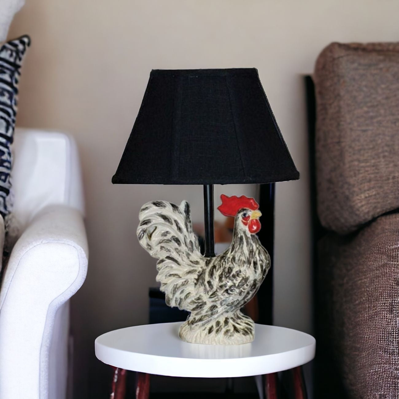 13" Rustic Farmhouse Rooster Accent Lamp With Black Shade