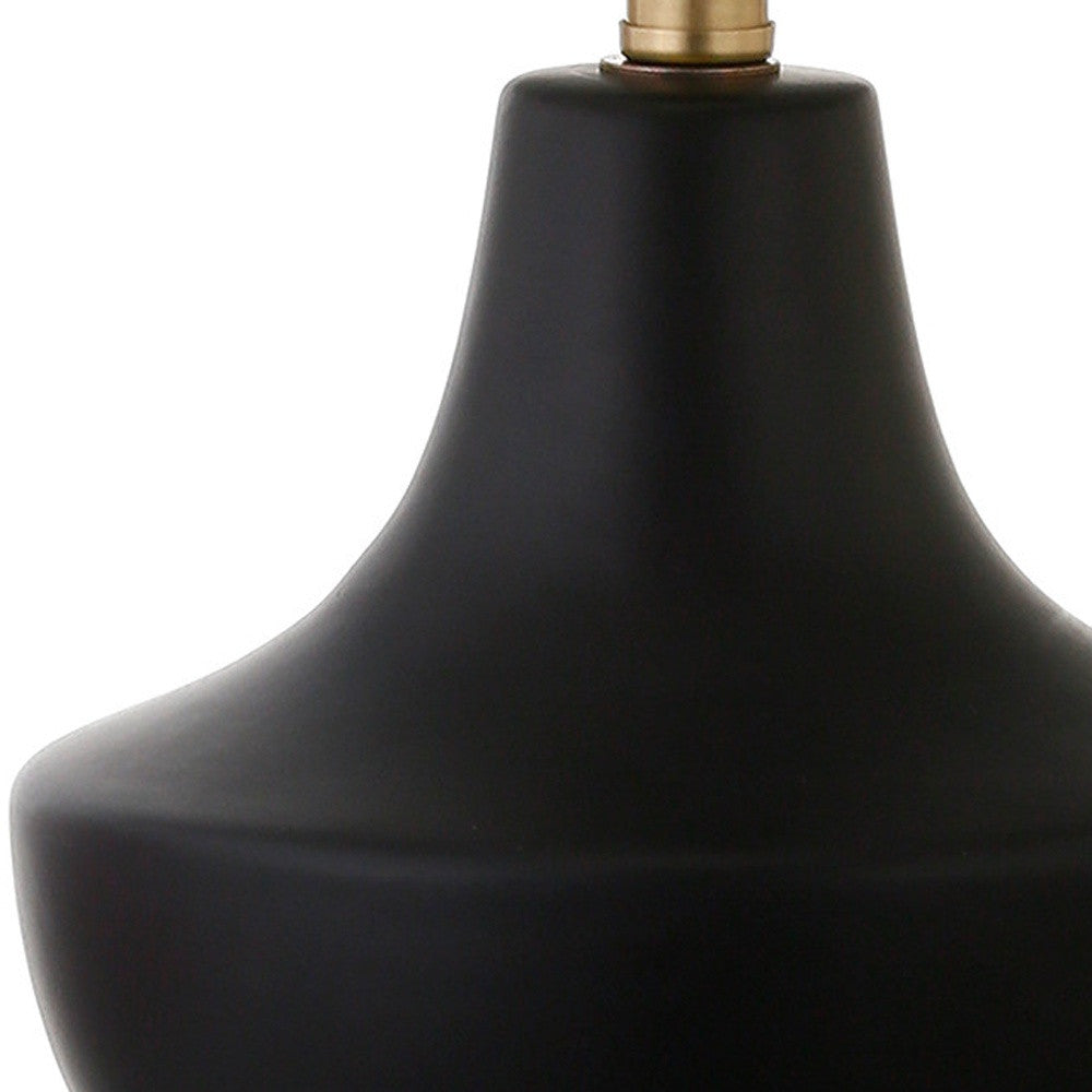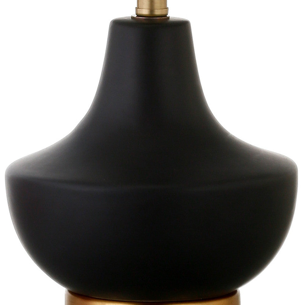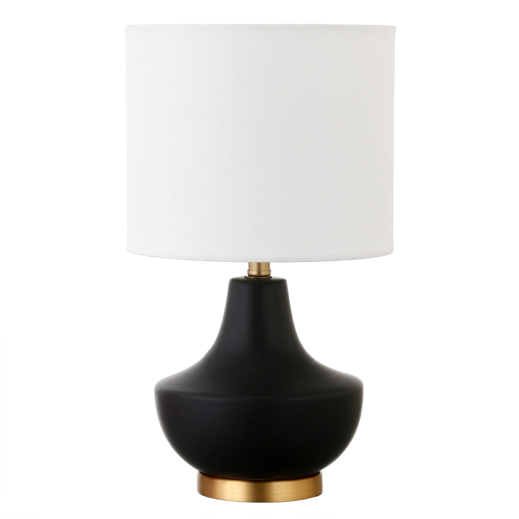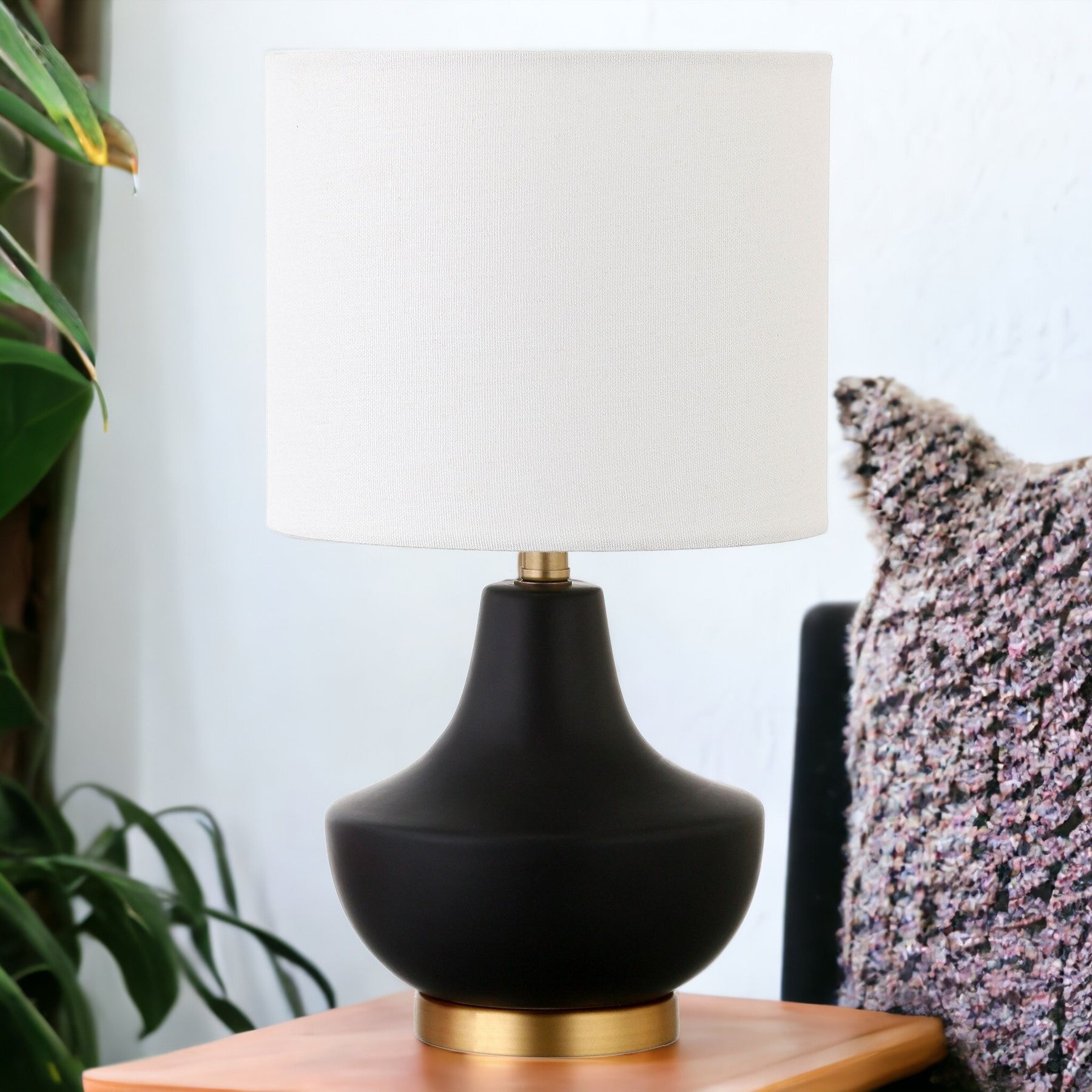 This 14-inch black and gold ceramic urn table lamp with white drum shade is a great way to add some brightness to any corner of your home. A gorgeous black and gold ceramic base brings just the right amount of pizzazz to this fabulous lamp. The white shade has a drum shape and is made of fabric, which makes it a perfect choice. This standard table lamp is designed to provide general lighting to the area. Use this lamp anywhere and elevate the look of the whole space. Bring some lite and good vibes into your space with this updated and stylishly designed lamp. 13.5-inch H x 7-inch W x 7-inch D