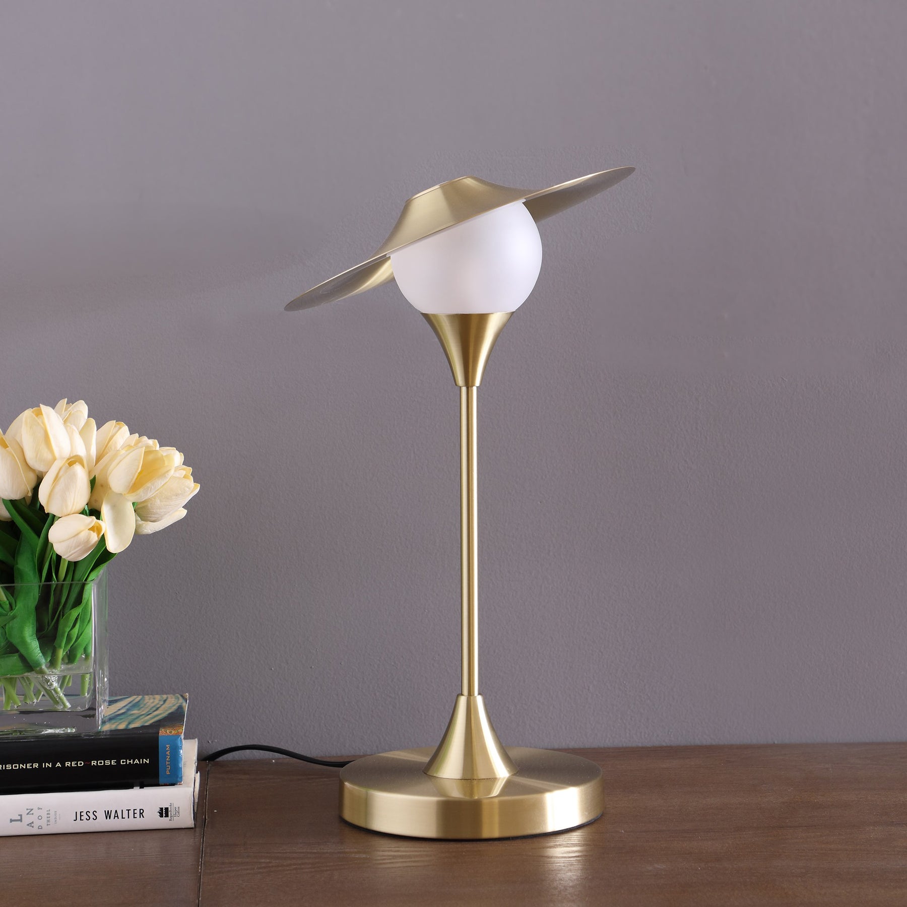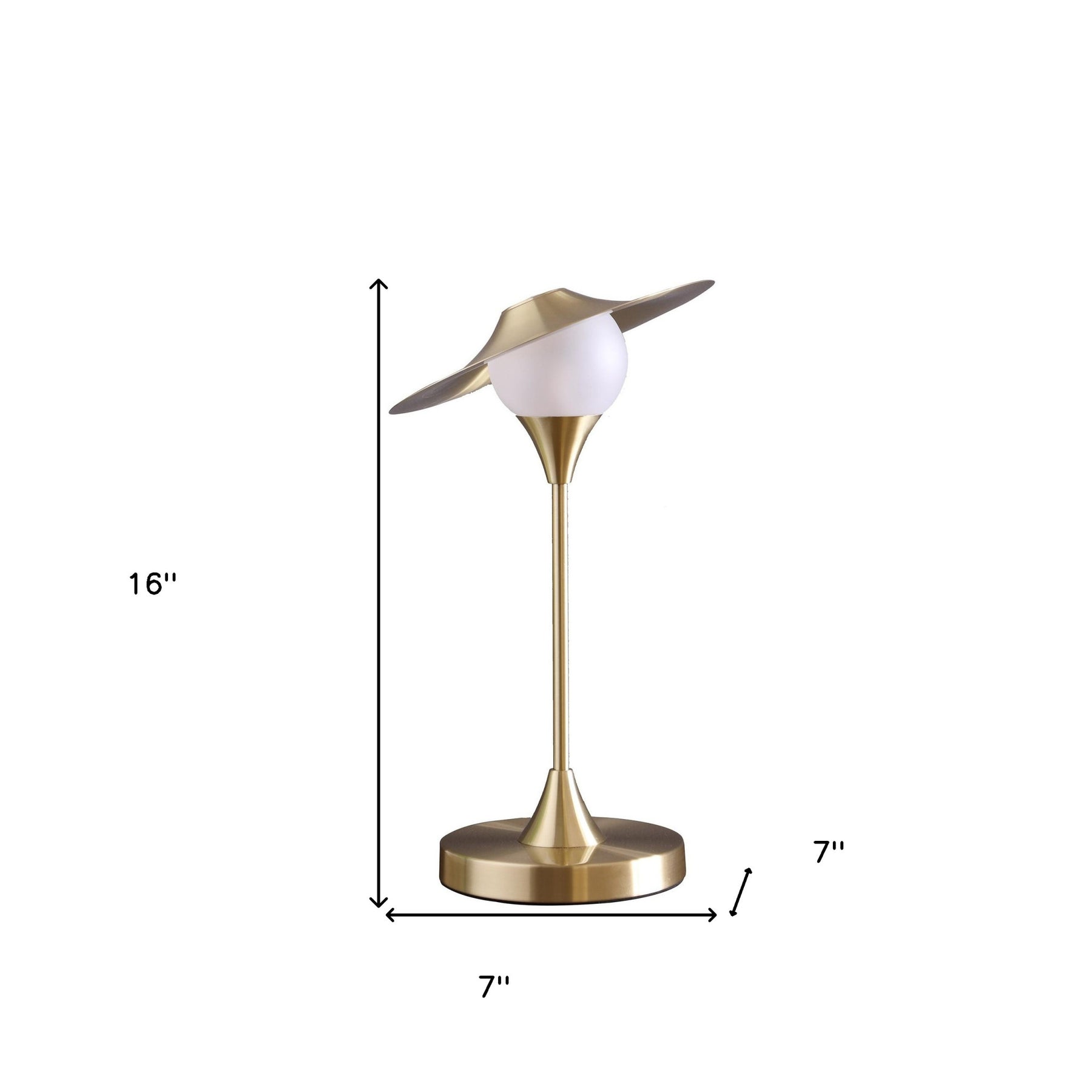 This 16" gold globe LED table lamp with gold novelty shade is a great way to add some brightness to any corner of your home. The gold shade has a novelty shape and is made of glass, which makes it a perfect choice. Modern in design, this globe table lamp is designed as simple sphere that lights from within. High quality design makes this a great lamp for not only lighting, but accenting a room with style. It is perfect for virtually any decor. 16" H x 7" W x 7" D