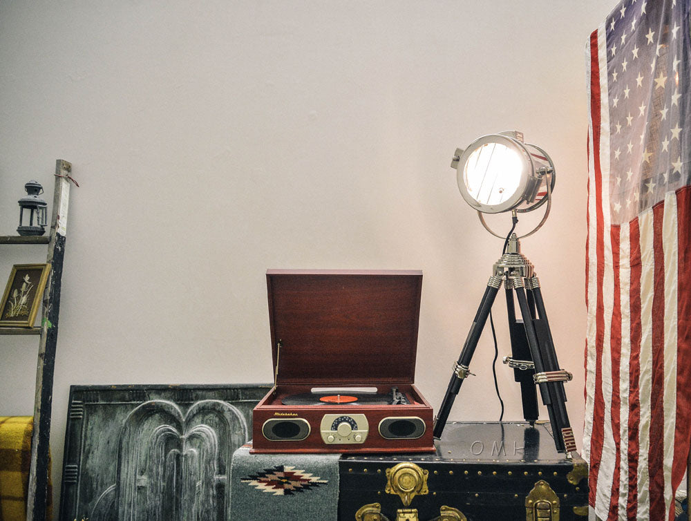 Get the trending industrial look in the comfort of your home and office! This small spotlight floor lamp fits well on top of every surface, whether on the corner of a desk or the top of a bookshelf. The legs can be extended by 35 inches for the versatility that you need. Material: Aluminum, Wood, and Stainless Steel Type of bulb base: E26 Maxed Watts: 40W