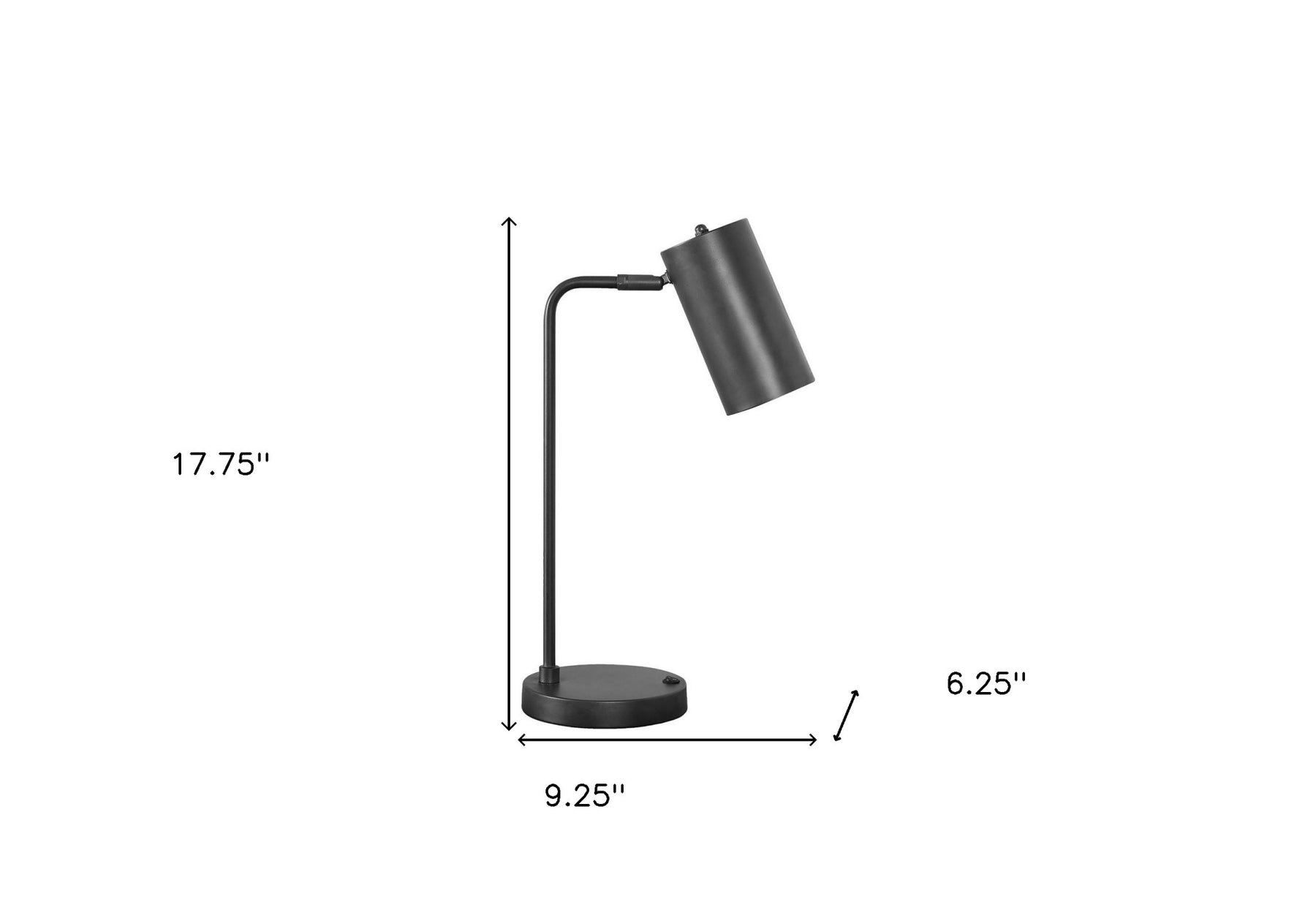 Bring of level of elegance and freshness to your space with this high quality 18-inch gray metal round usb table lamp with gray cylinder shade. A gorgeous gray metal base brings just the right amount of pizzazz to this fabulous lamp. The gray shade has a cylinder shape and is made from metal. This standard table lamp is designed to provide general lighting to the area. Use this lamp anywhere and elevate the look of the whole space. It is perfect for virtually any decor. 17.75-inch H x 9.25-inch W x 6.25-inch D