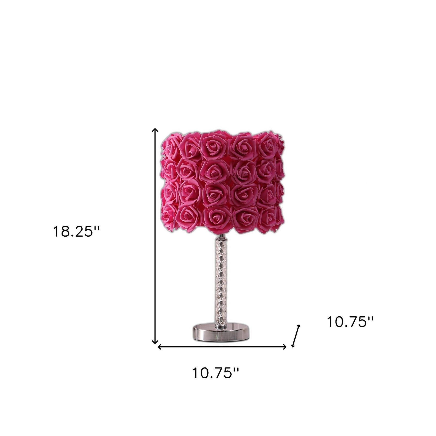 Bring of level of elegance and freshness to your space with this high quality 18" silver bedside LED table lamp with red flowers drum shade. The red drum fabric shade is a great compliment to this lamp. Bedside table lamps help to add a soft and cozy glow to your bedroom. Great for evening reading! Use this lamp anywhere and elevate the look of the whole space. The perfect lamp to create just the right natural and soothing light in your space. 18.25" H x 10.75" W x 10.75" D