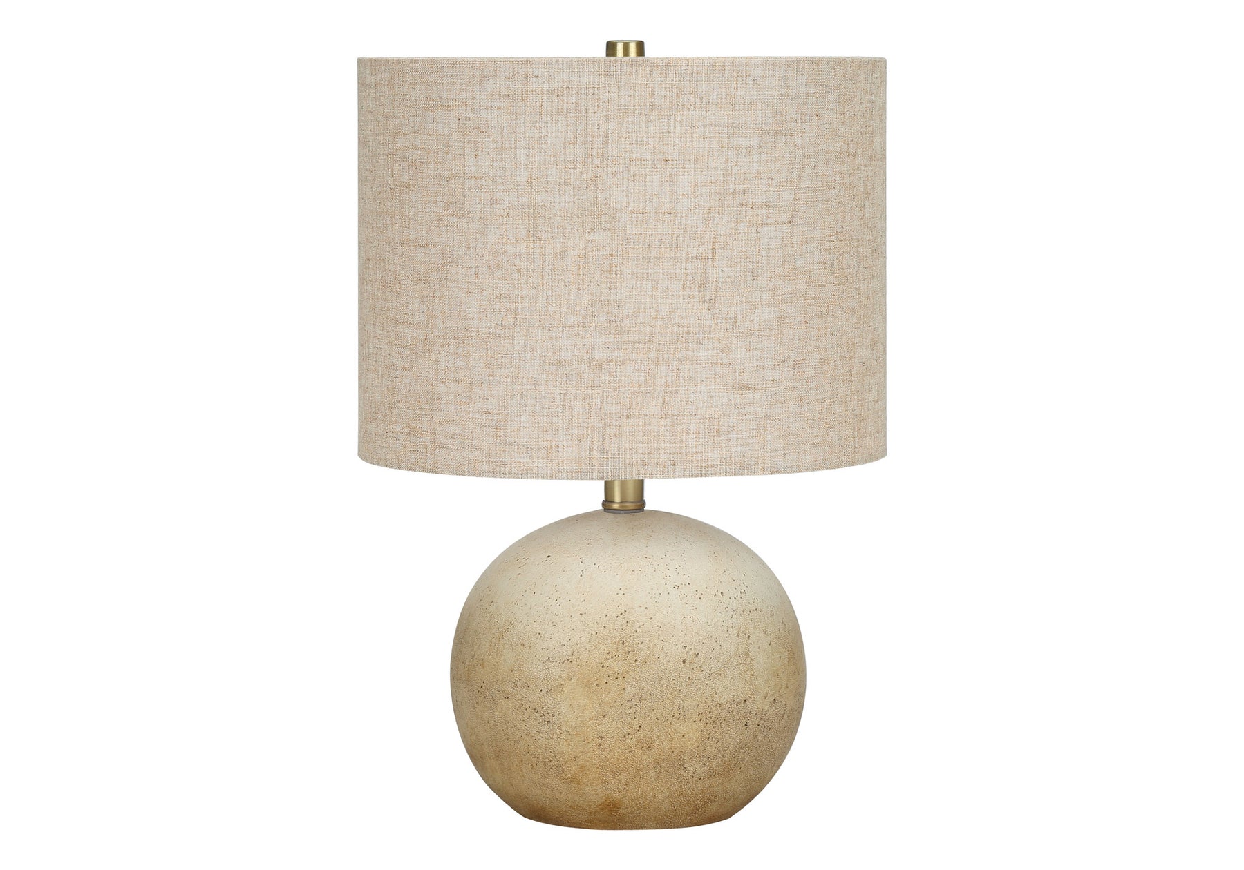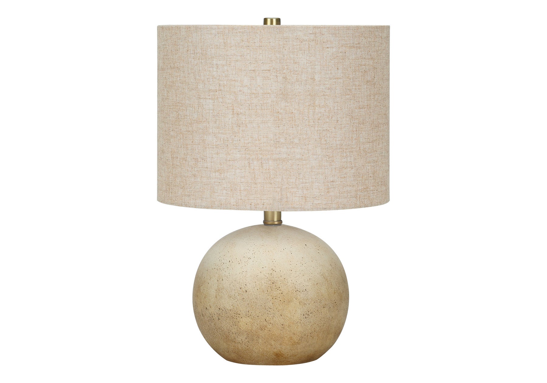 Truly a mix of design and functionality that doesn't compromise on style, this 20-inch beige concrete round table lamp with beige drum shade will be a great addition to your space. A gorgeous beige concrete base brings just the right amount of pizzazz to this fabulous lamp. The beige drum linen shade is a great compliment to this lamp. This standard table lamp is designed to provide general lighting to the area. The light that this lamp throws is soft and warm to elevate the look of most any space in your home. The perfect lamp to create just the right natural and soothing light in your space. 19.5-inch H x 13-inch W x 13-inch D