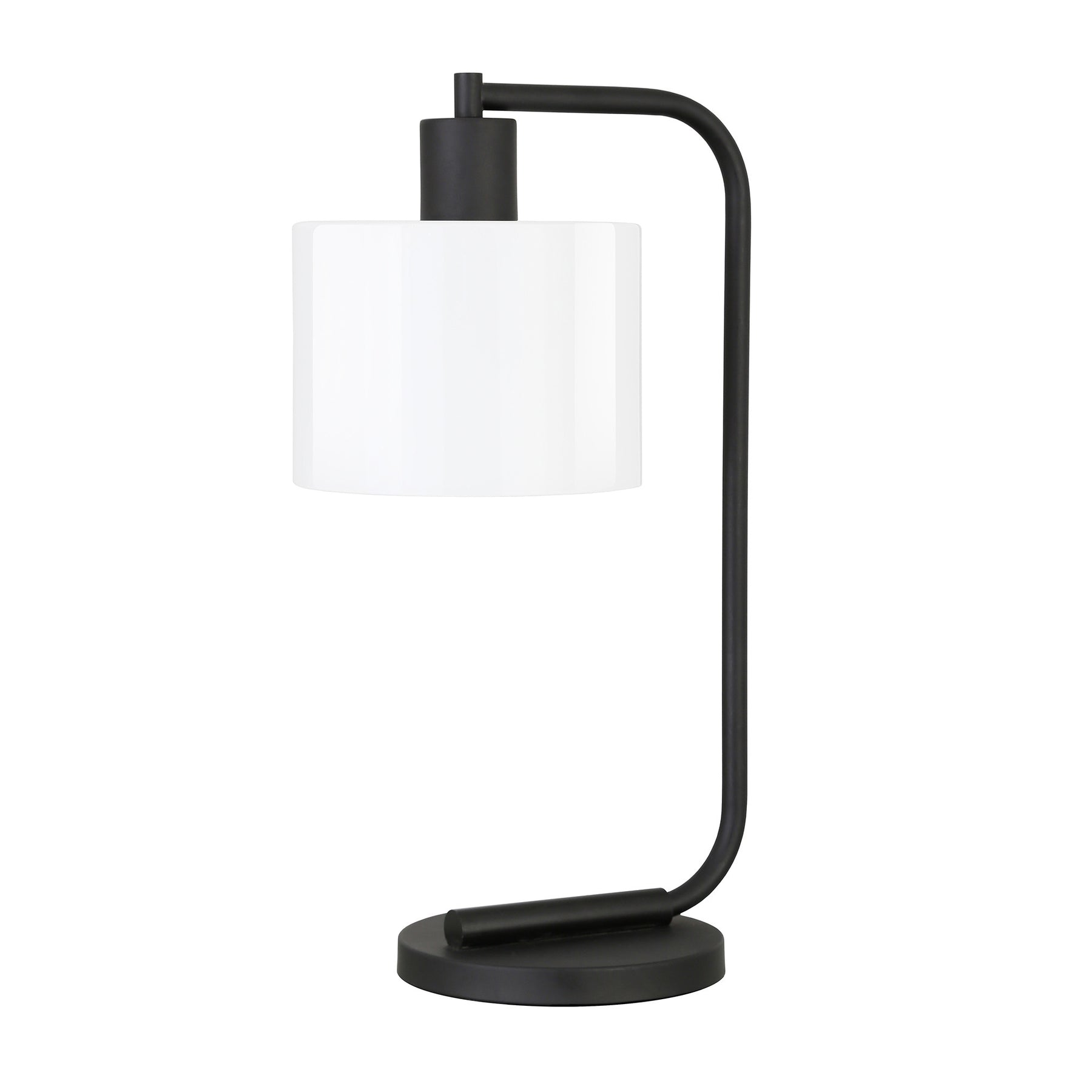 Bring of level of elegance and freshness to your space with this high quality 20-inch black and white metal arched table lamp with white drum shade. The lamp is made of sturdy metal and features a black and white color. The white drum glass shade is finishes this piece off nicely and symmetrically a sophisticated take on a classic, this arched table lamp is a great option for a unique look. The light that this lamp throws is soft and warm to elevate the look of most any space in your home. Bring some lite and good vibes into your space with this updated and stylishly designed lamp. 20-inch H x 12-inch W x 8-inch D