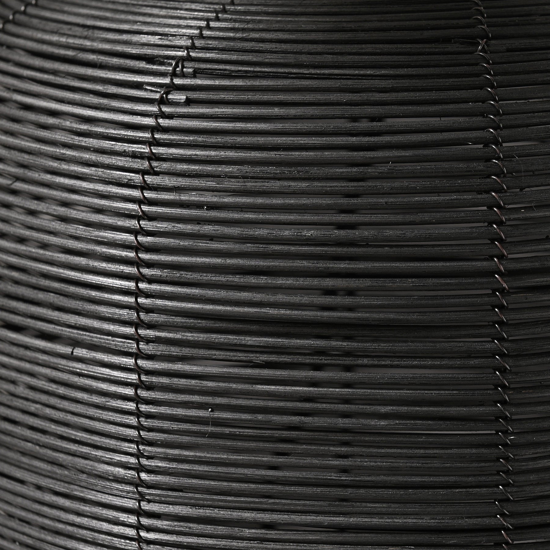 This 20-inch black rattan table lamp with white drum shade is the perfect combination of design and function. The lamp is made of sturdy rattan and features a black color. The white drum fabric shade is finishes this piece off nicely and symmetrically this standard table lamp is designed to provide general lighting to the area. Use this lamp anywhere and elevate the look of the whole space. It is perfect for virtually any decor. 20-inch H x 12-inch W x 12-inch D