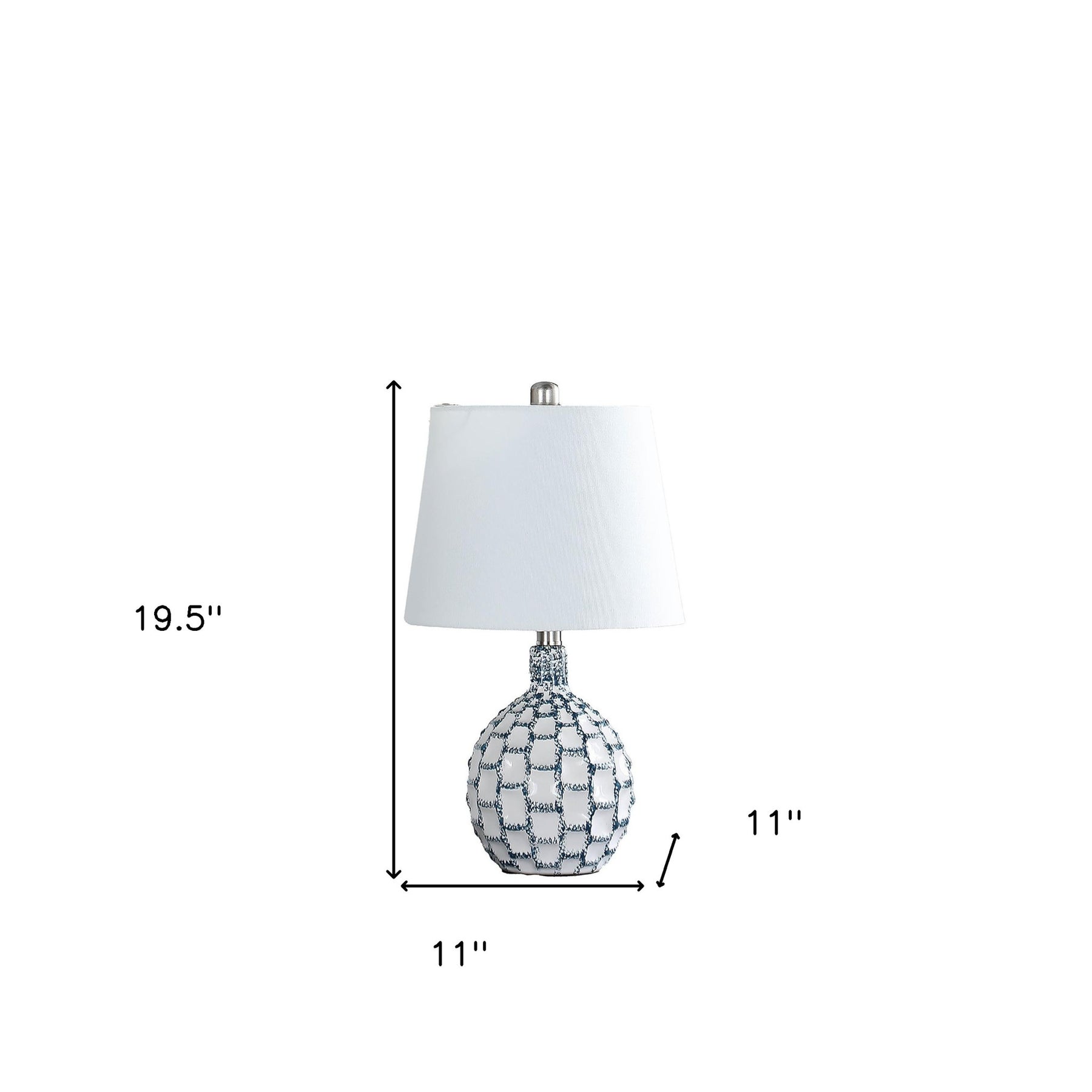 With this 20" blue and white ceramic table lamp with off white drum shade you can bring in design to any space along with adding some ambient lighting. The base of this lamp is made of ceramic finished in a blue and white tone. The off white drum fabric shade is finishes this piece off nicely and symmetrically This standard table lamp is designed to provide general lighting to the area. Use this lamp anywhere and elevate the look of the whole space. It is perfect for virtually any decor. 19.5" H x 11" W x 11" D
